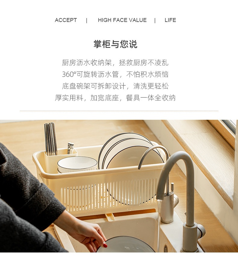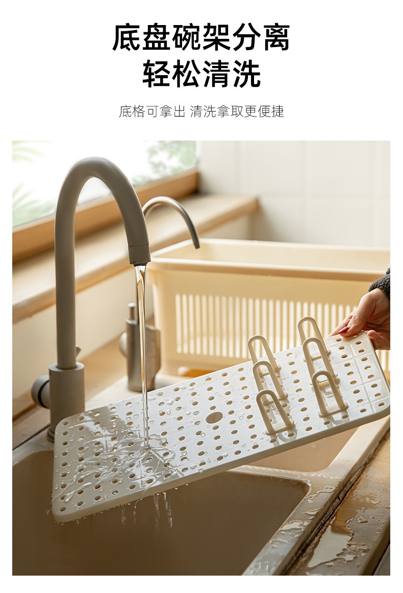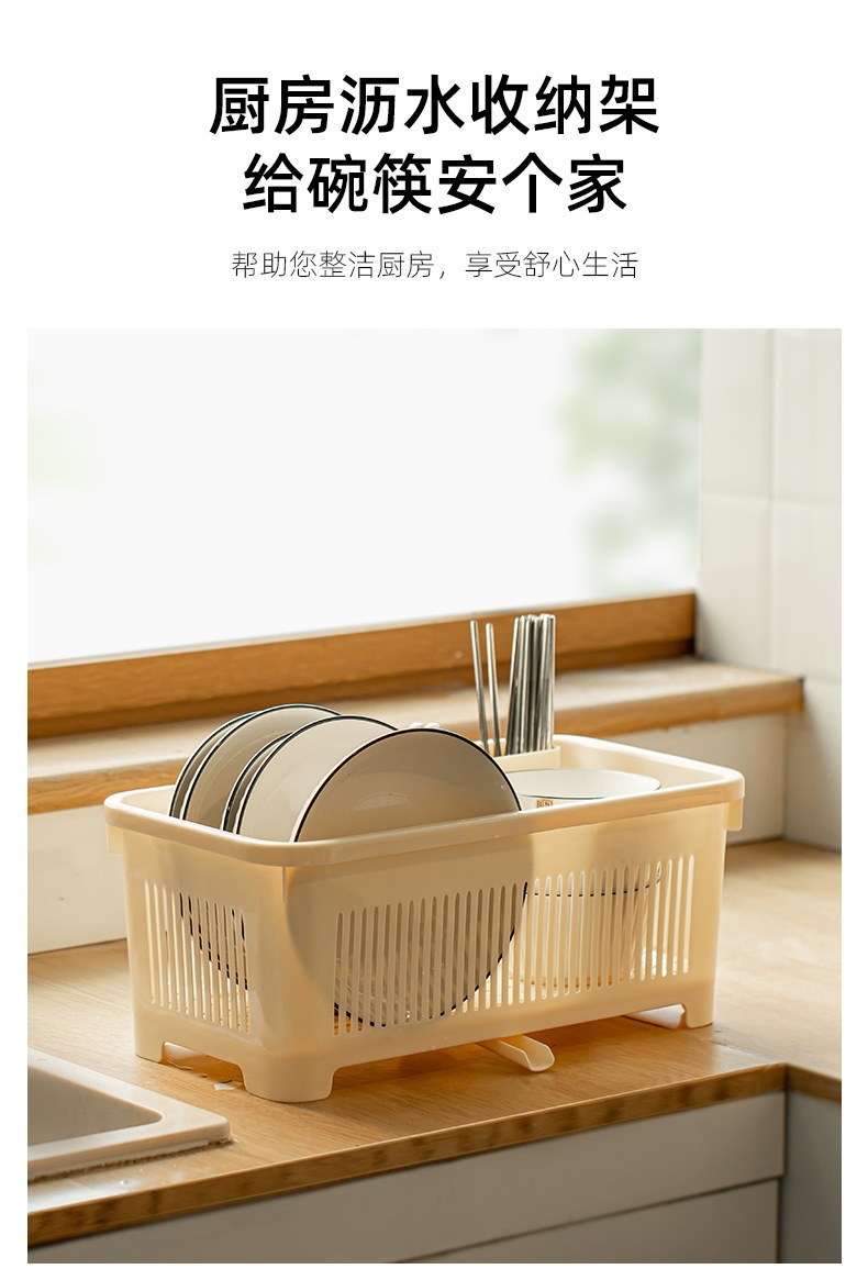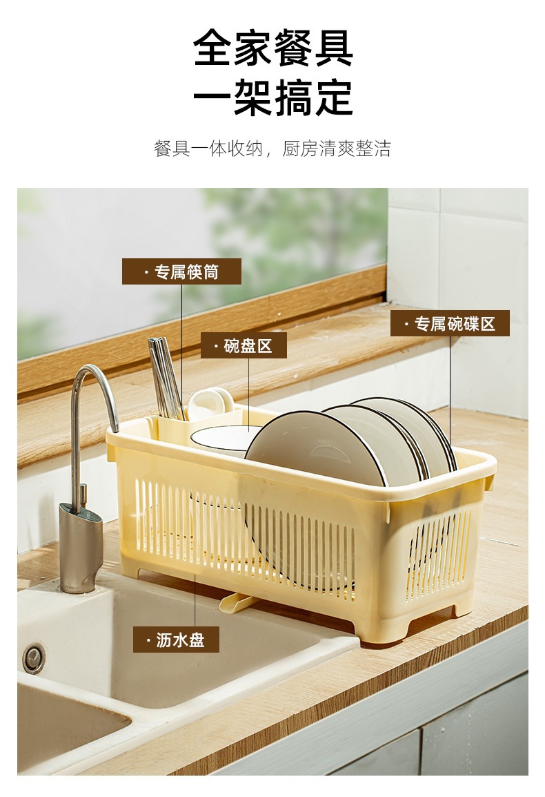 家用厨房餐具沥水收纳架 可拆洗带导水管 碗碟筷子一体整理置物架
