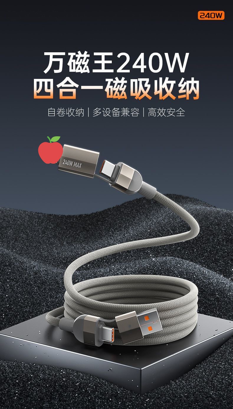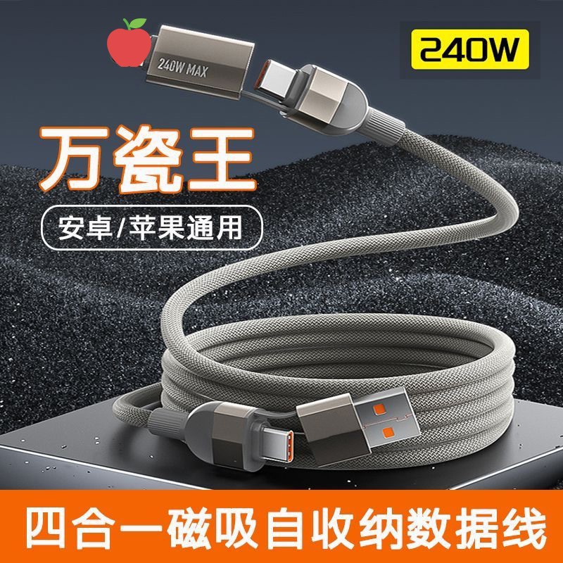 磁吸四合一数据线240w适用华为超级快充手机线二拖二易收纳磁吸式,批发价,价格:8.9,厂家直销,磁吸四合一数据线240w适用华为超级快充手机线二拖二易收纳磁吸式,免费拿样。