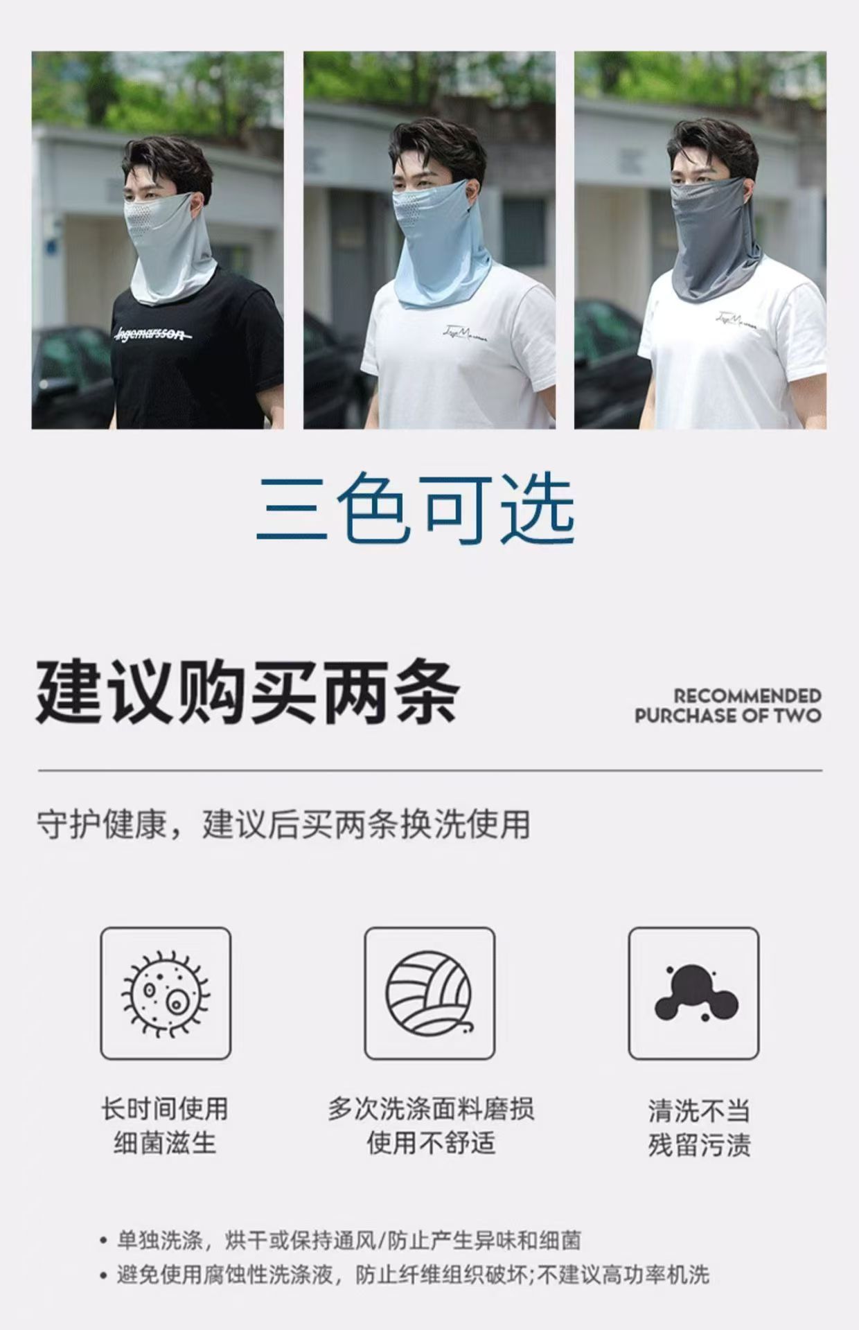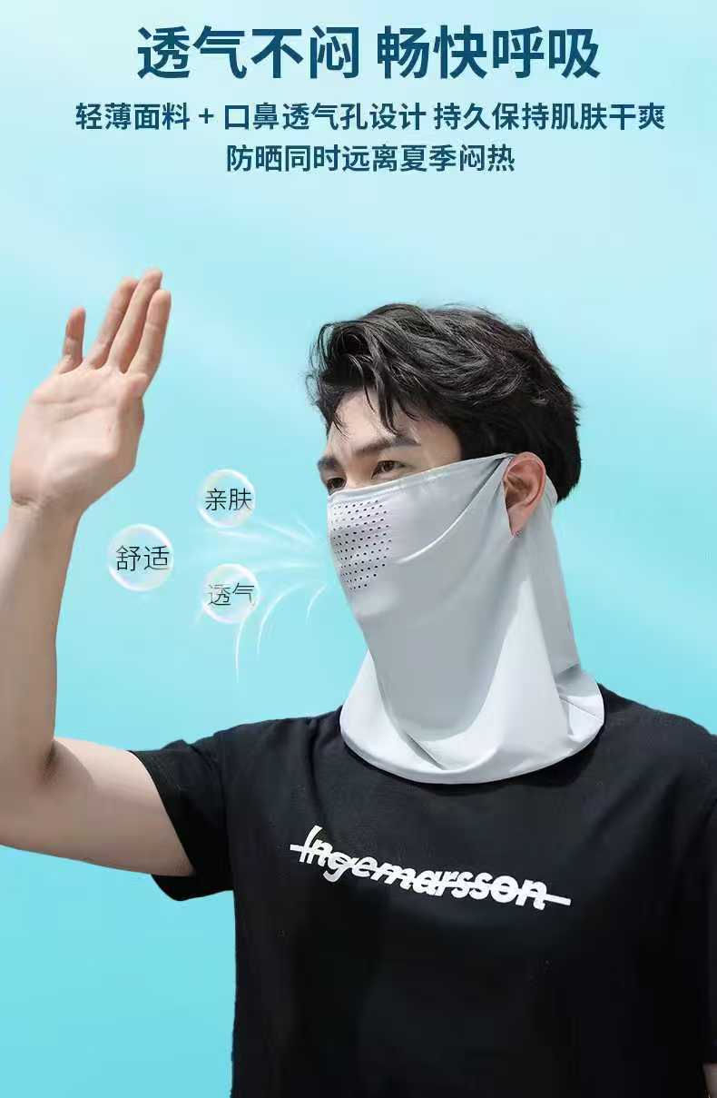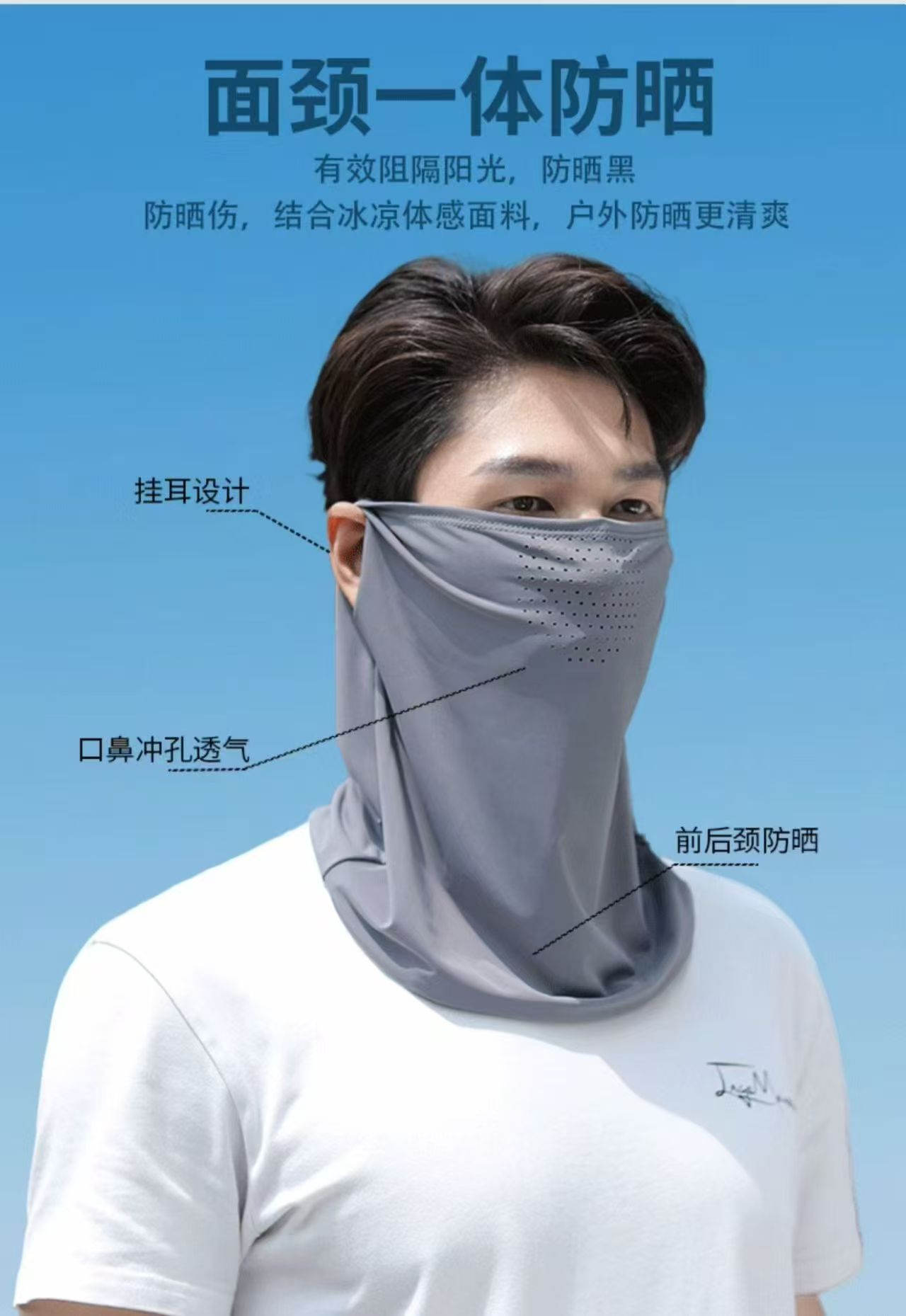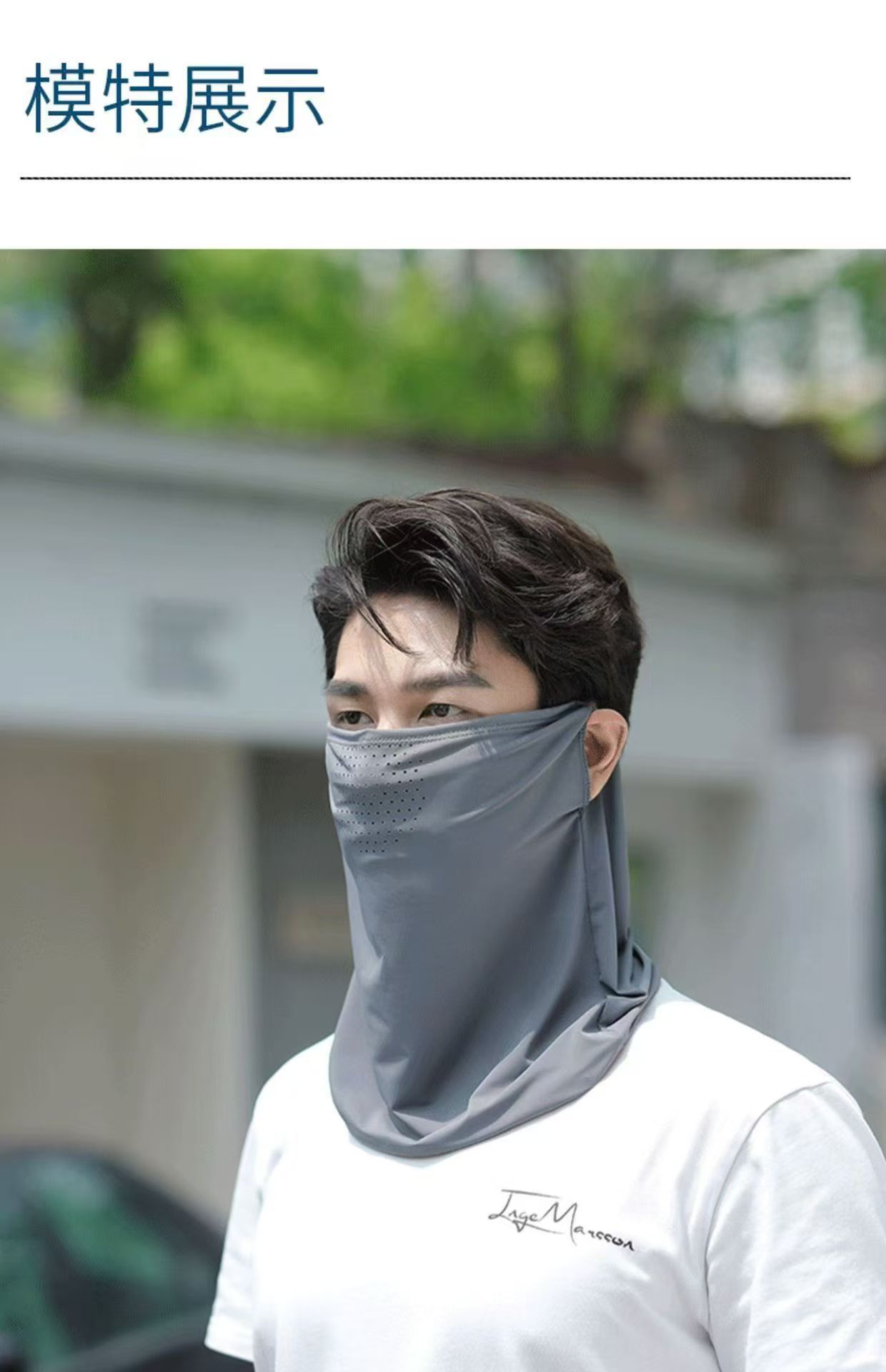 防晒面罩男护颈脖套户外骑行面巾钓鱼头巾冰丝围脖遮全脸挂耳面罩