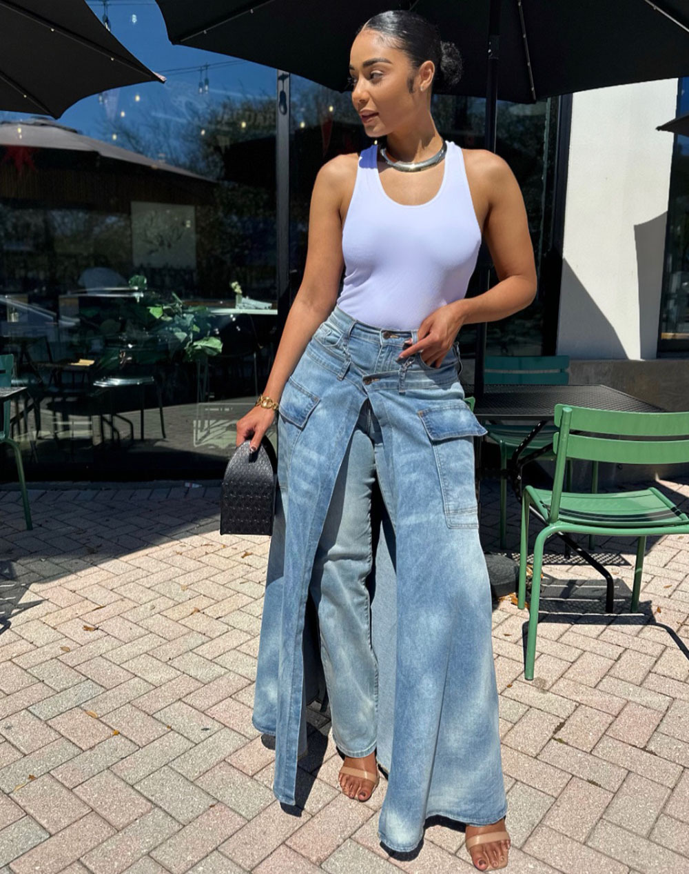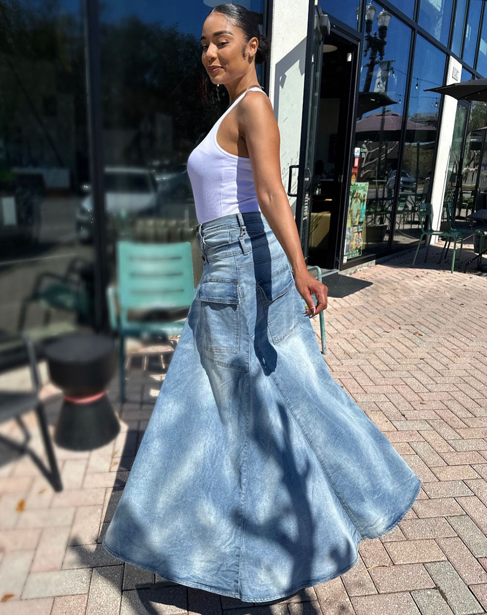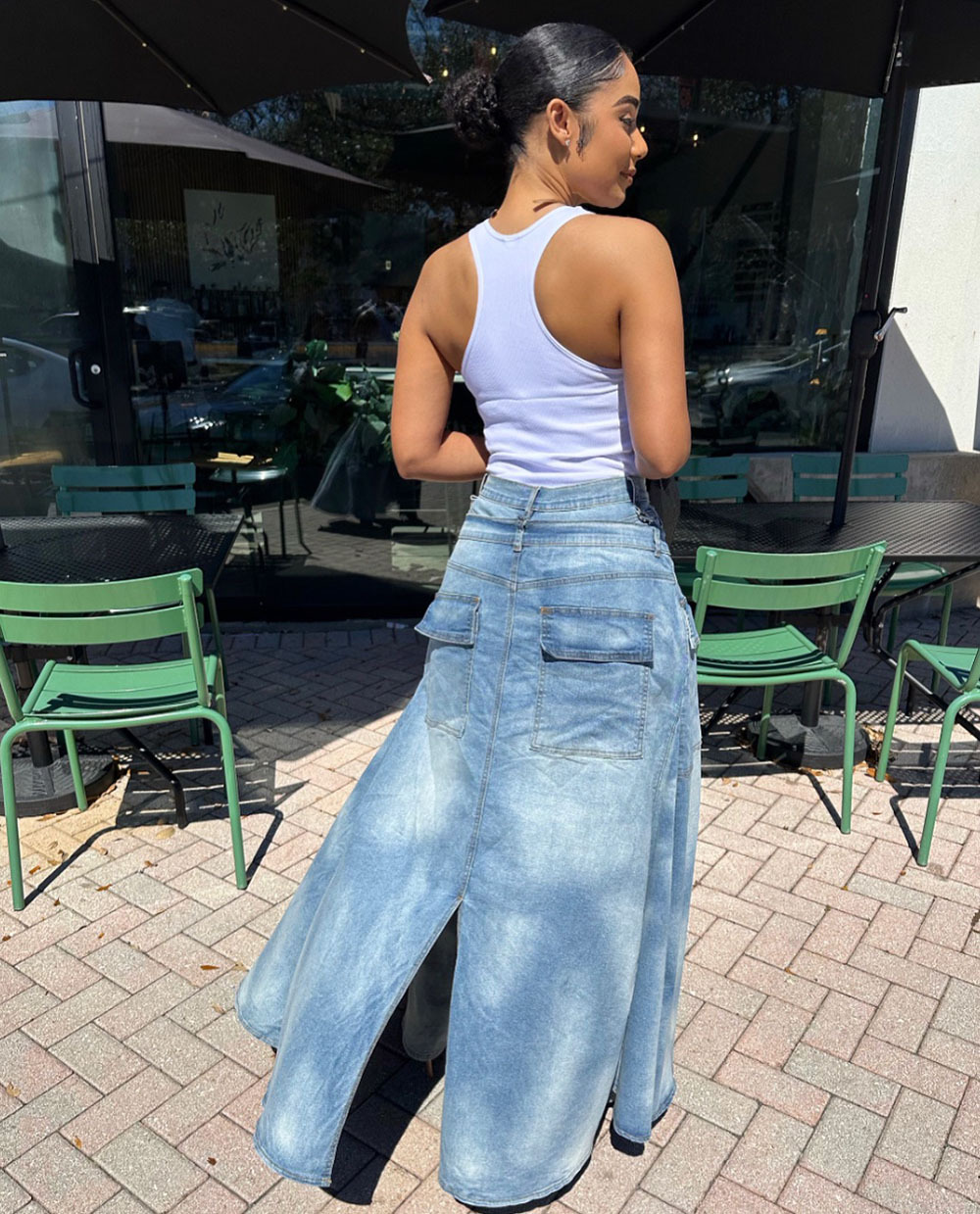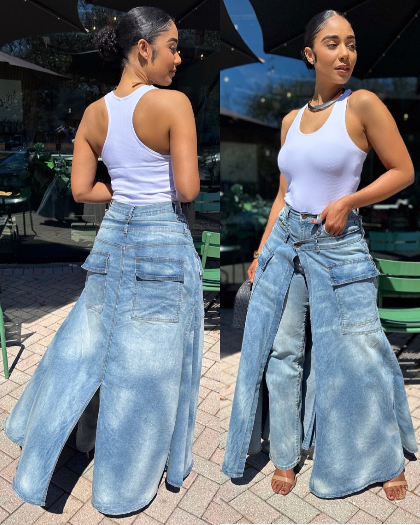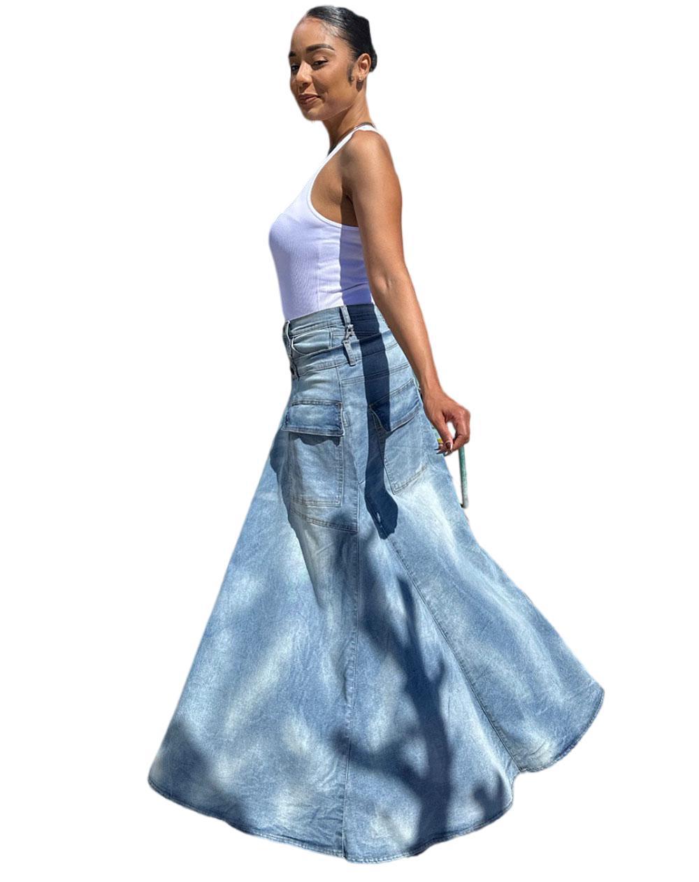 欧美女式假两件牛仔裤裙 亚马逊跨境女装街头潮流对称开衩牛仔裤