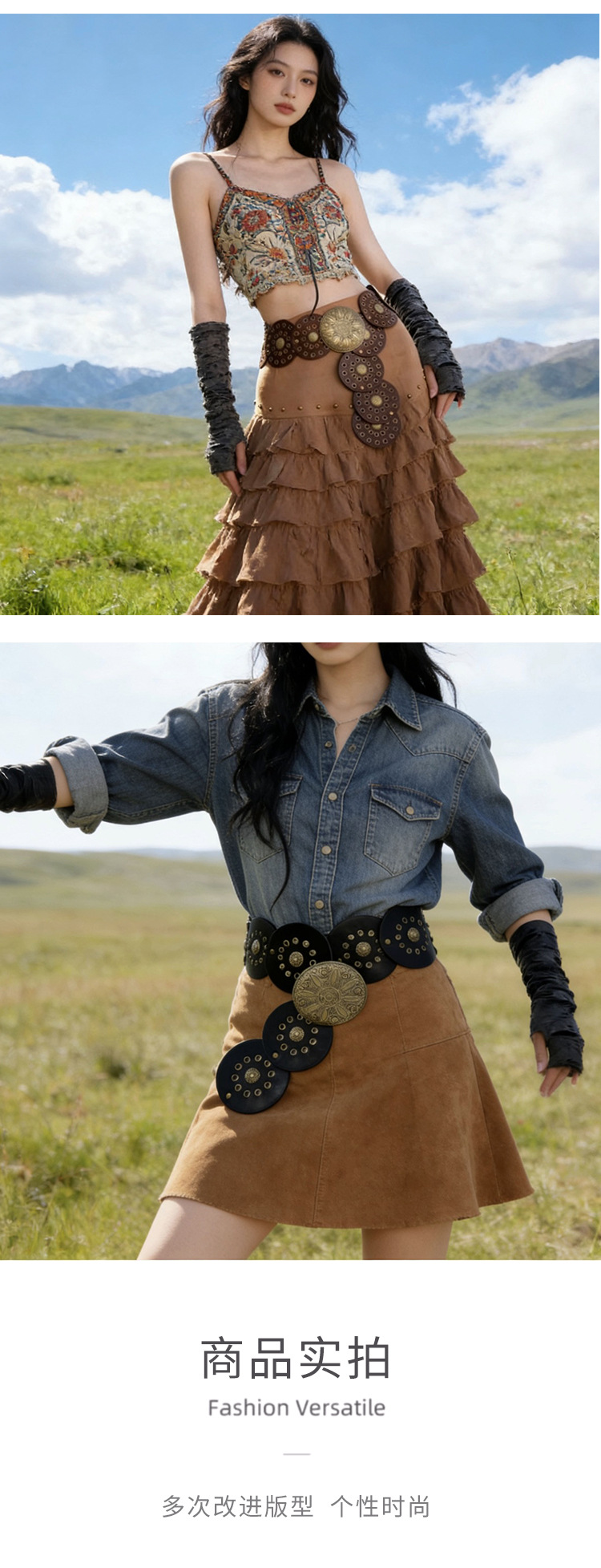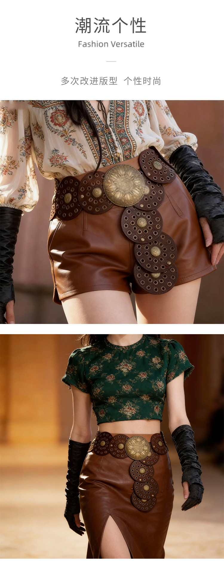 酷配跨境腰带女镂空装饰千禧风雕花腰封时尚百搭复古西部牛仔腰带