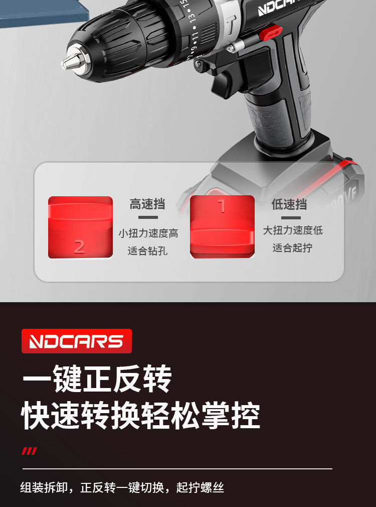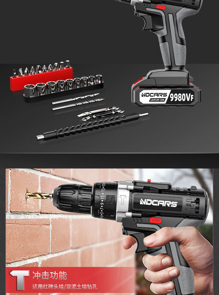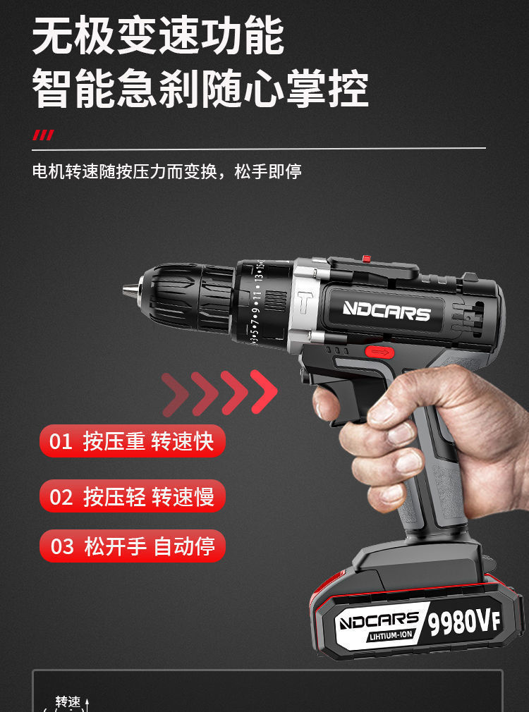工业级大功率手电钻锂电双速充电钻冲击钻家用多功能电动螺丝刀