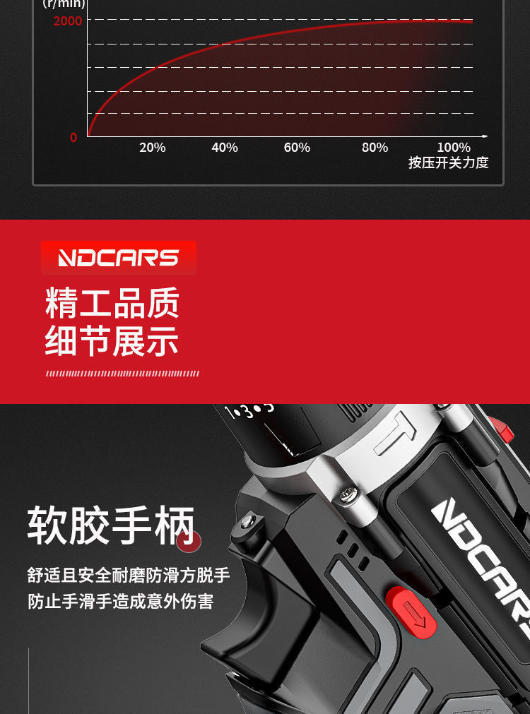 推荐理由:硬核动力,高效破局:搭载工业级纯铜无刷电机,最大功率可达700W,峰值扭矩最高至90牛·米,配合3000r/min高转速,能轻松穿透钢材、混凝土、实木等硬质材料,钻孔效率比传统电钻提升40%以上。