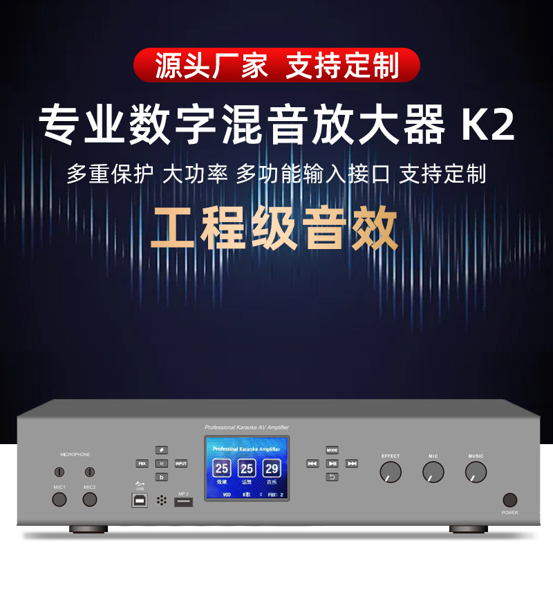 源头厂家定制K2专业数字混音放大器家用卡拉OK功放器工程级音效,批发价,价格:2213,厂家直销,源头厂家定制K2专业数字混音放大器家用卡拉OK功放器工程级音效,免费拿样。