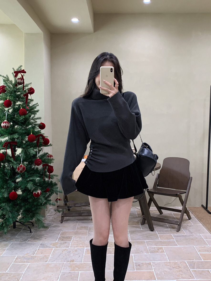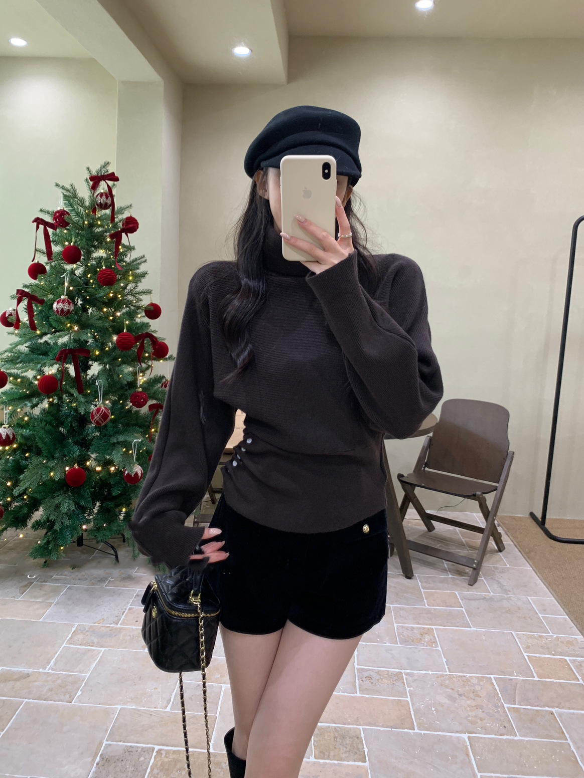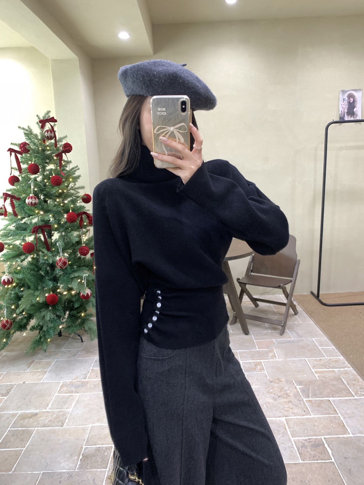 高领侧边抽褶设计感针织衫女秋冬内搭收腰显瘦气质上衣25时尚新款