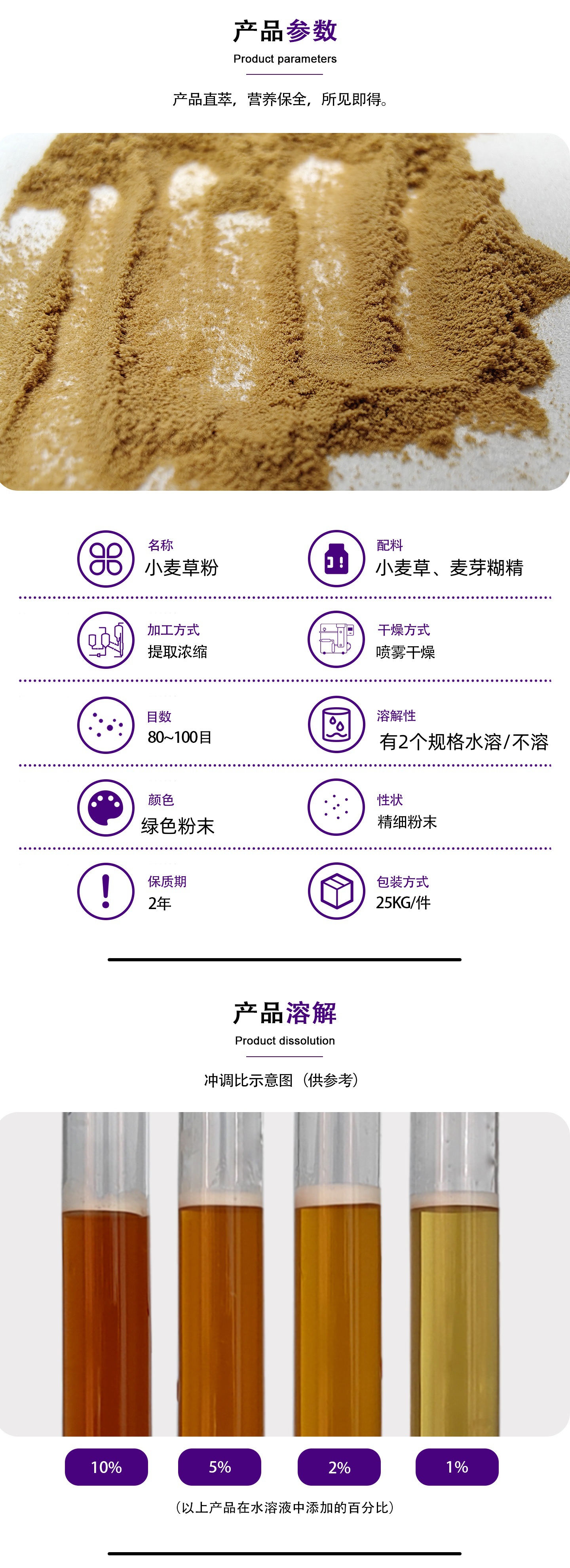 小麦草粉 水溶澄清 小麦苗提取物 小麦草浓缩粉 优硕生物食品原料
