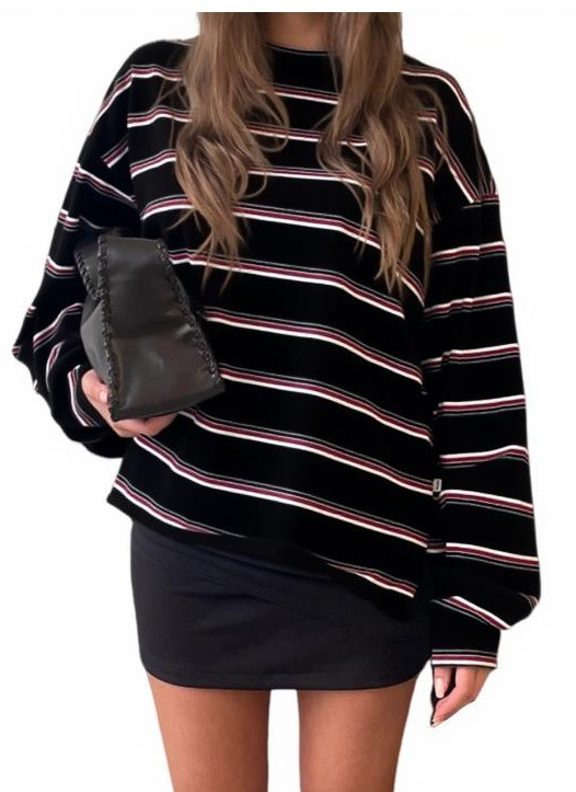 2025秋季休闲百搭女圆领撞色条纹长袖宽松套头T恤上衣宽松卫衣,批发价,价格:22,厂家直销,2025秋季休闲百搭女圆领撞色条纹长袖宽松套头T恤上衣宽松卫衣,免费拿样。