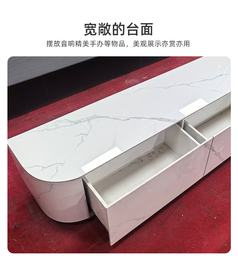 佛山厂家可定 制奶油风新款岩板电视柜 带抽屉地台客厅家用电视柜