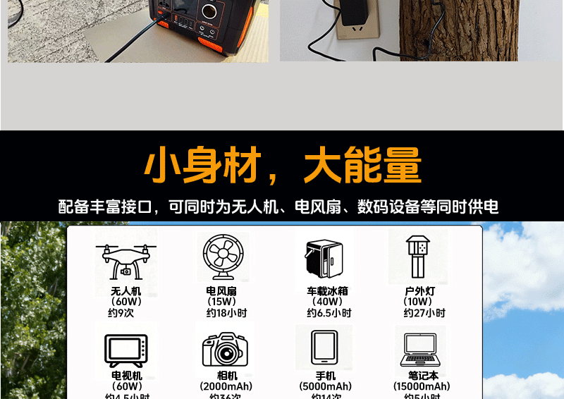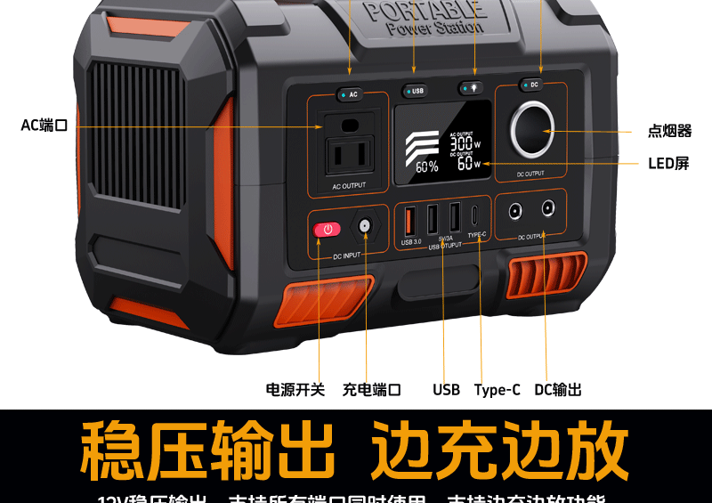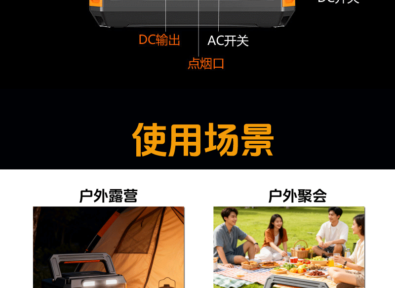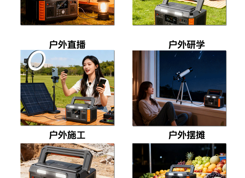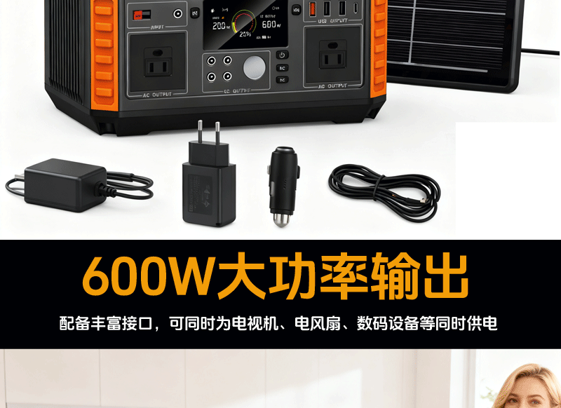 600W 户外储能爆款 便携式 露营升维电源功率1000W应急太阳能锂电