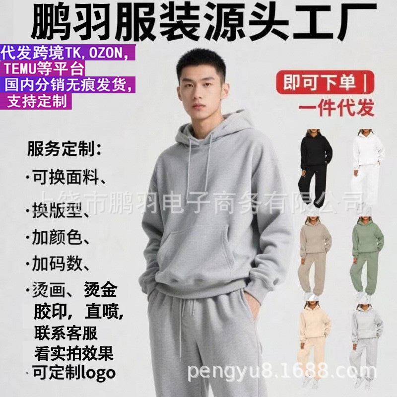 跨境外贸汤米欧美男装时尚男士宽松连帽衫春秋款运动卫衣铅山代发