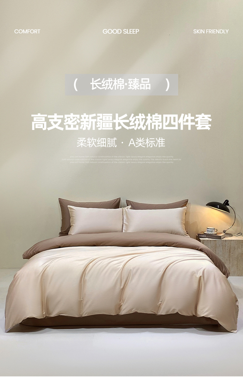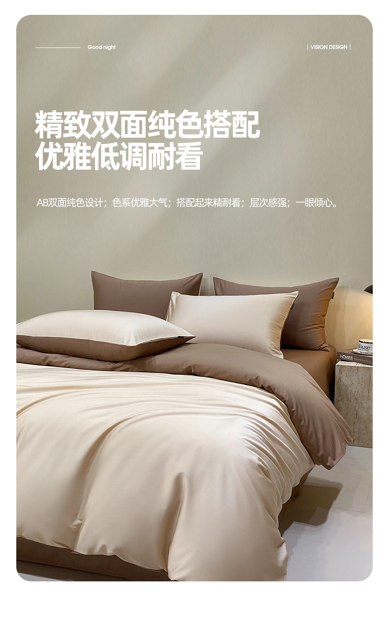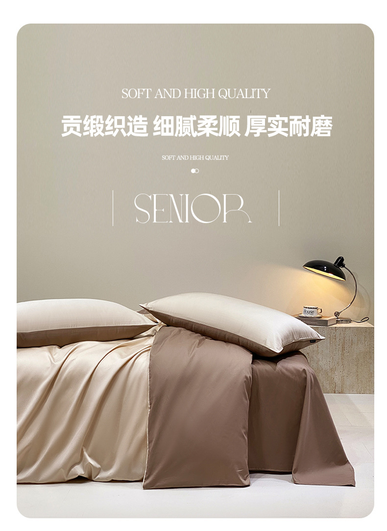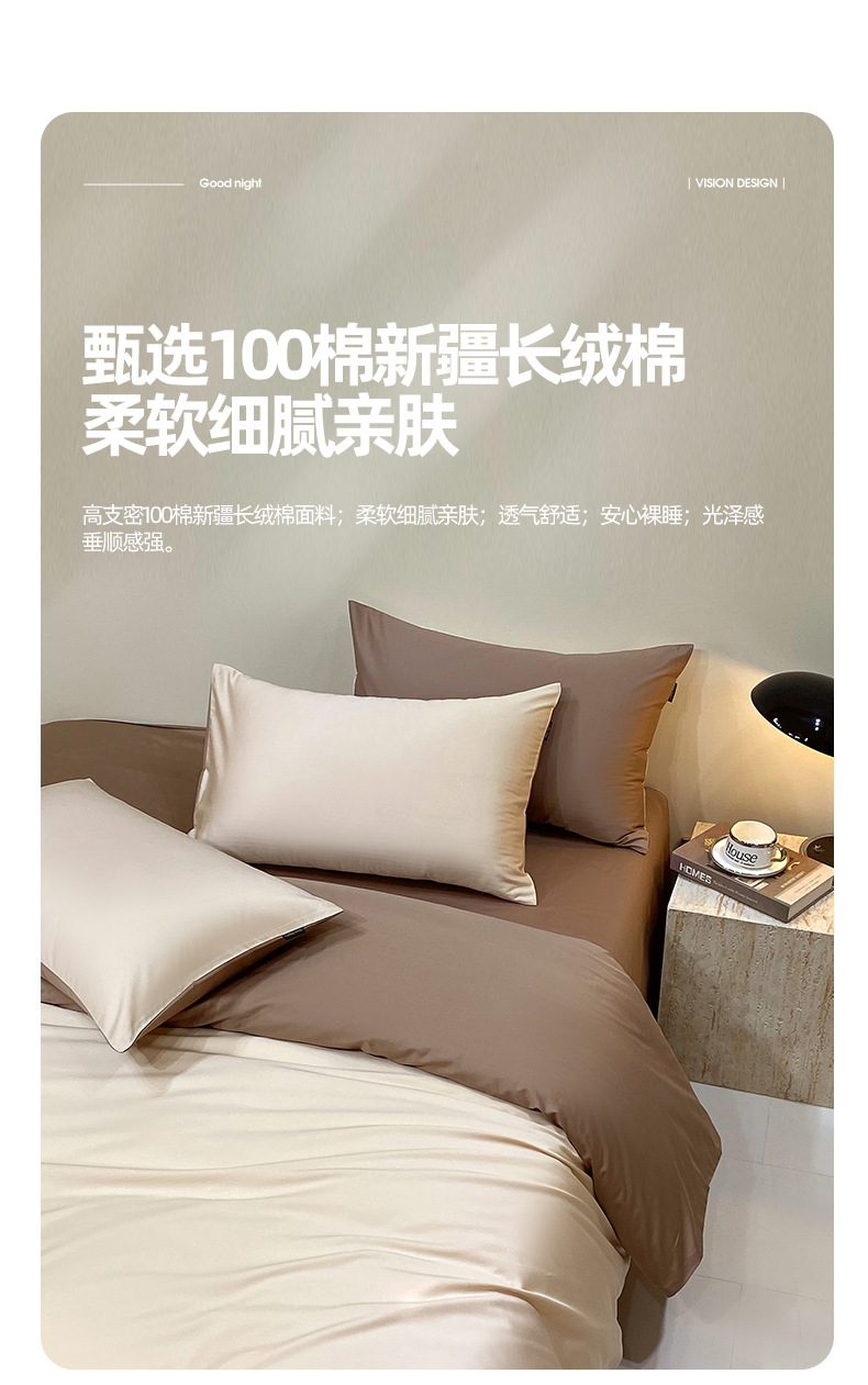 A类40S长绒棉四件套高端轻奢高支密全棉四件套简约三件套纯色床单