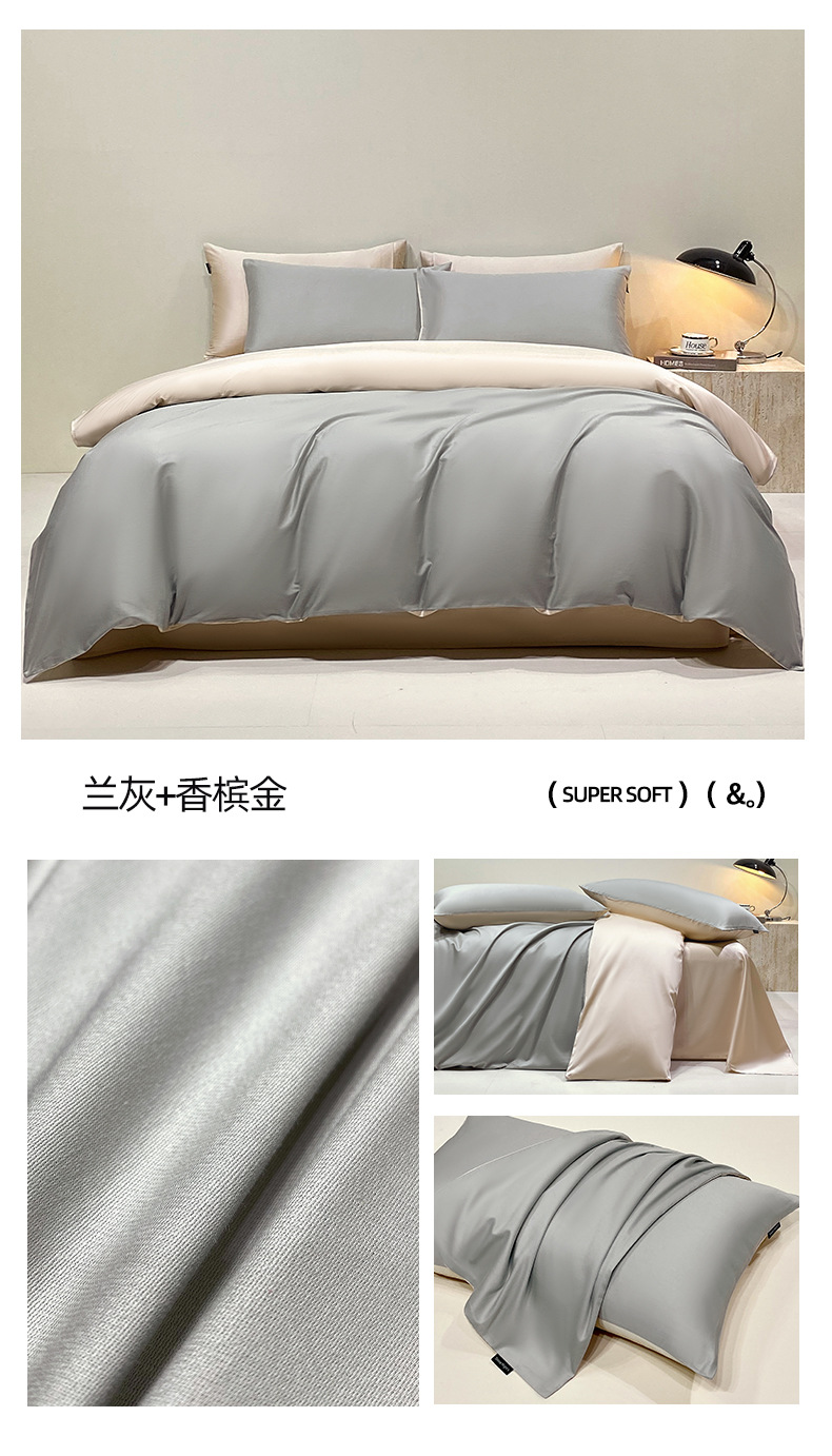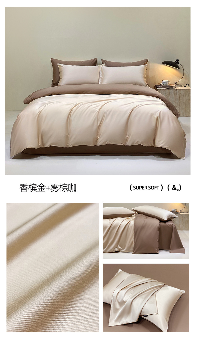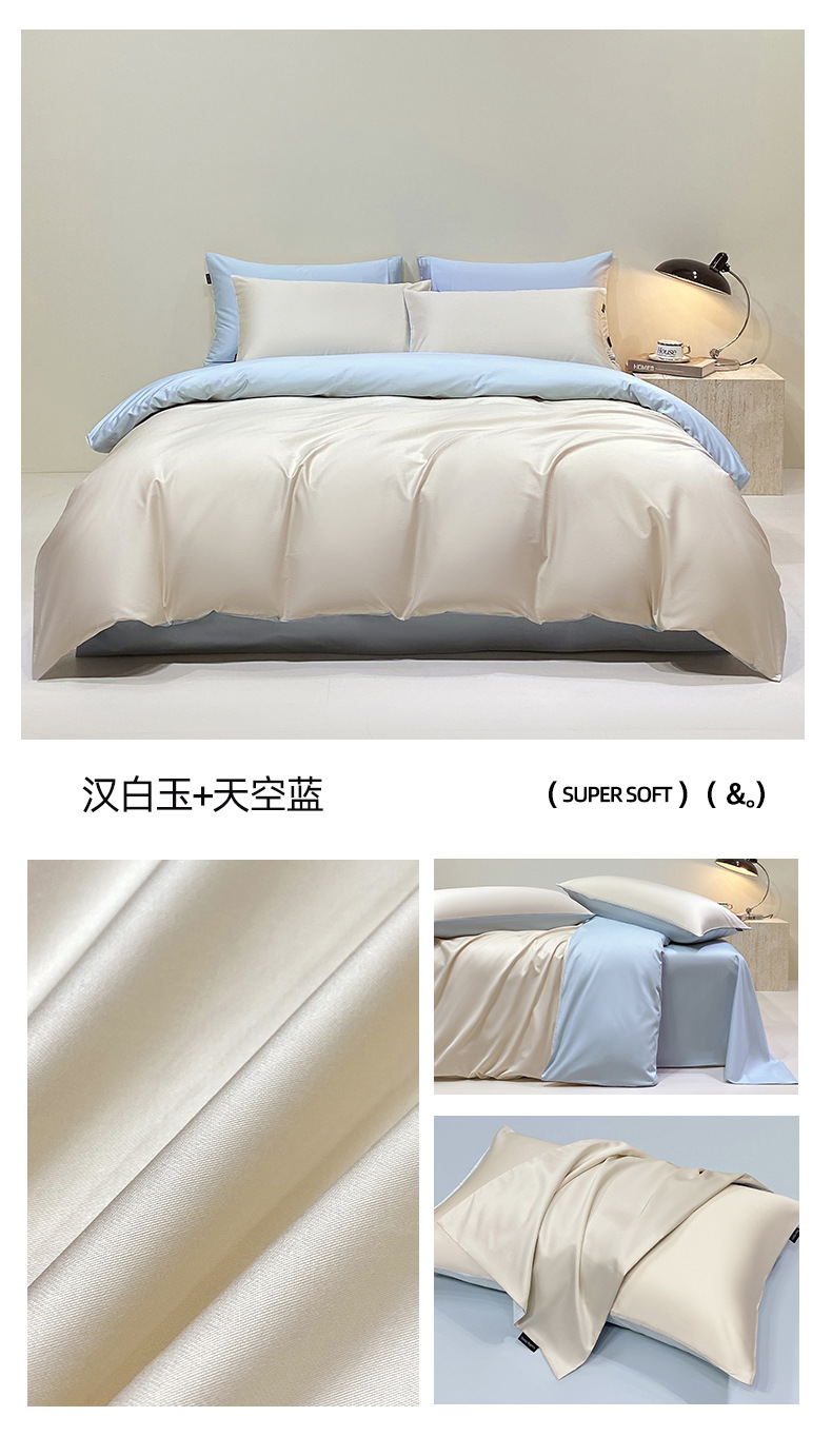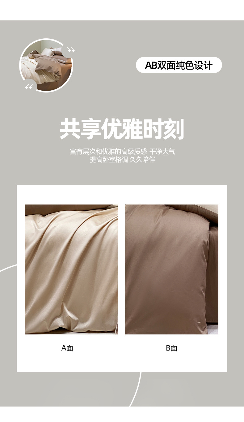 A类40S长绒棉四件套高端轻奢高支密全棉四件套简约三件套纯色床单