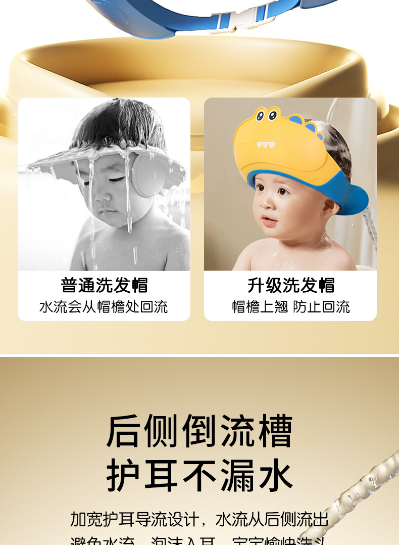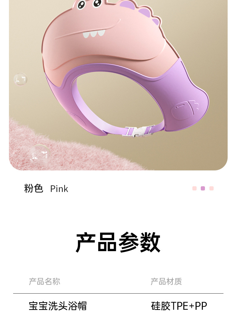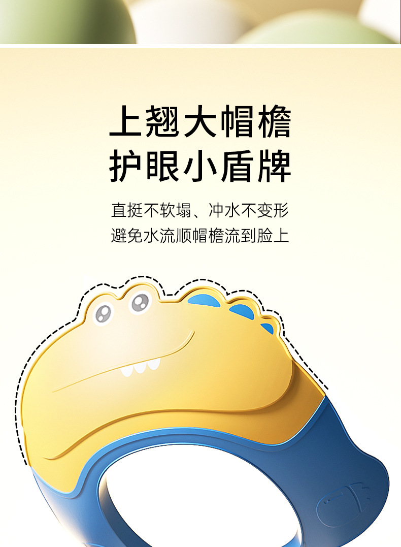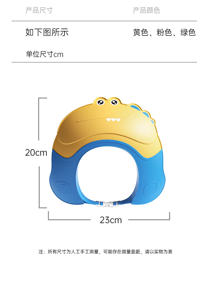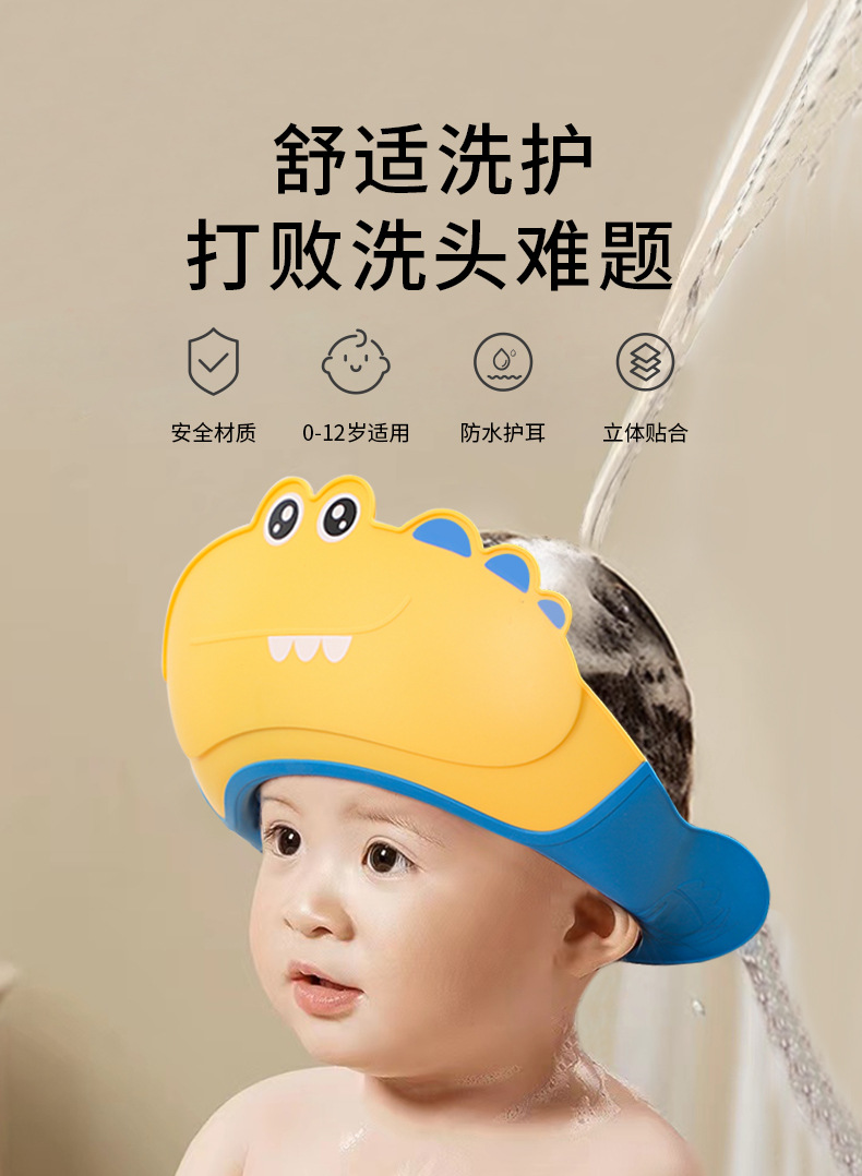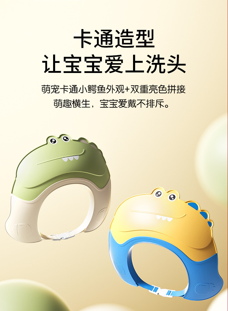 推荐理由:舒适洗护,打败洗头难题,安全材质,0-12岁适用,防水护耳,立体贴合,卡通造型,上翘大帽檐,护眼小盾牌,后侧倒流槽,护耳不漏水,柔软内胶圈,防滑贴合,滴水不漏,多档头围可调,陪伴宝宝成长耐高温花式消毒