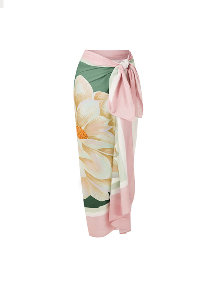 连体bikini套装游泳衣女性感系带长裙复古印花法式比基尼两件套女
