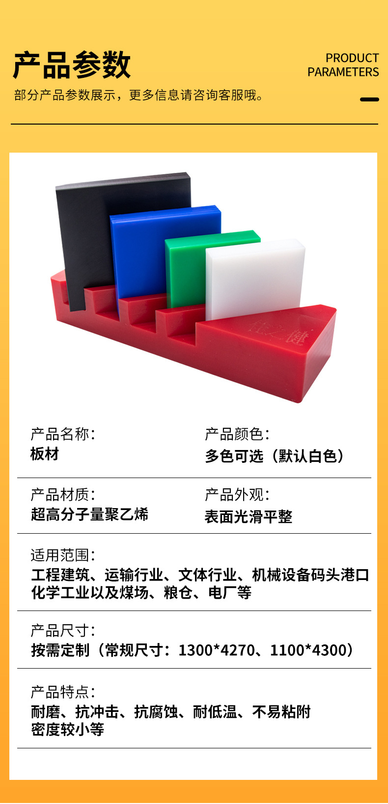 超高分子量聚乙烯板材UPE高密度煤仓料仓衬板耐磨HDPE工程塑料板