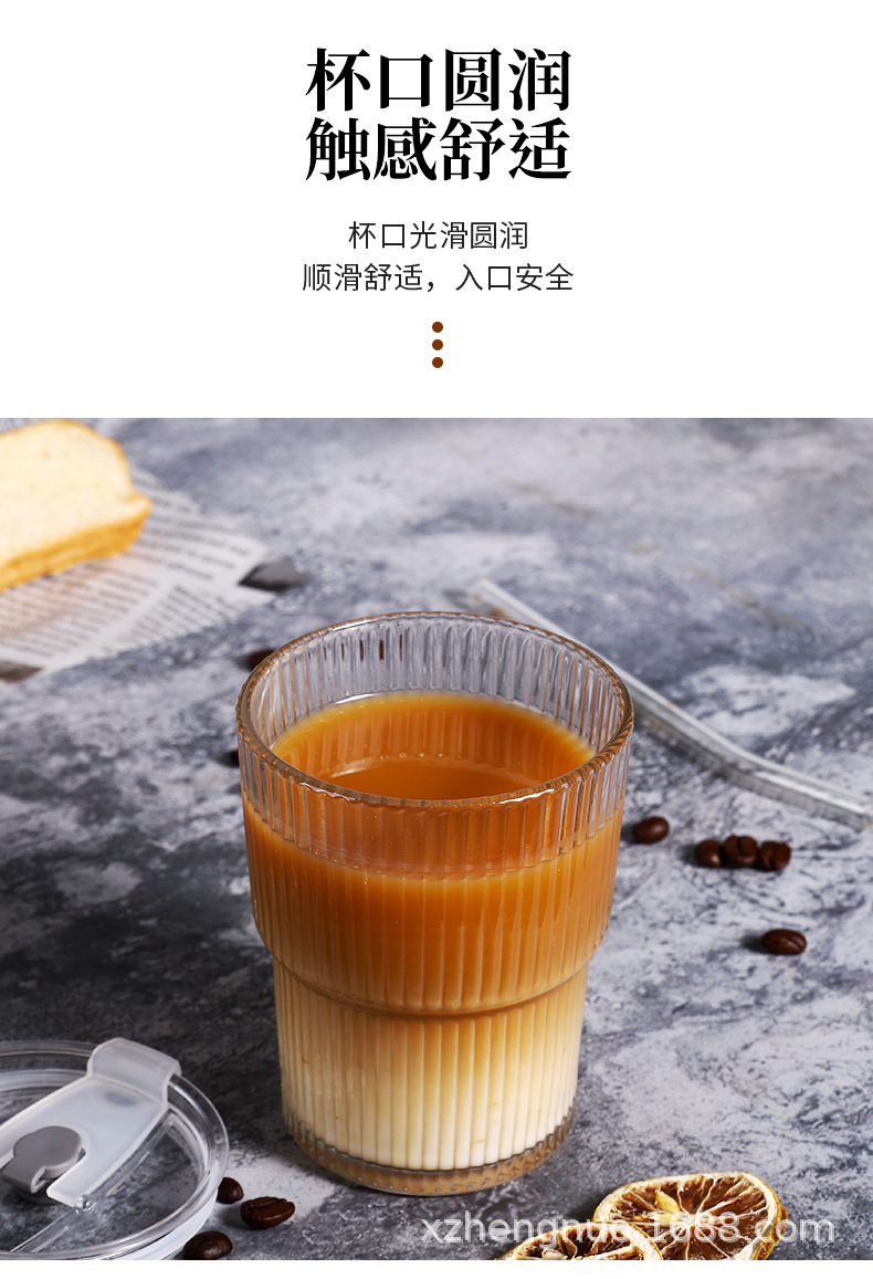 竖纹竹节杯玻璃杯透明家用条纹水杯办公室带盖吸管杯ins风咖啡杯,批发价,价格:1.69,厂家直销,竖纹竹节杯玻璃杯透明家用条纹水杯办公室带盖吸管杯ins风咖啡杯,免费拿样。