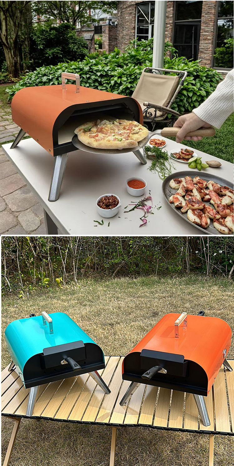 跨境出口亚马逊木质颗粒披萨炉 内置温度计便携式户外烧烤披萨机