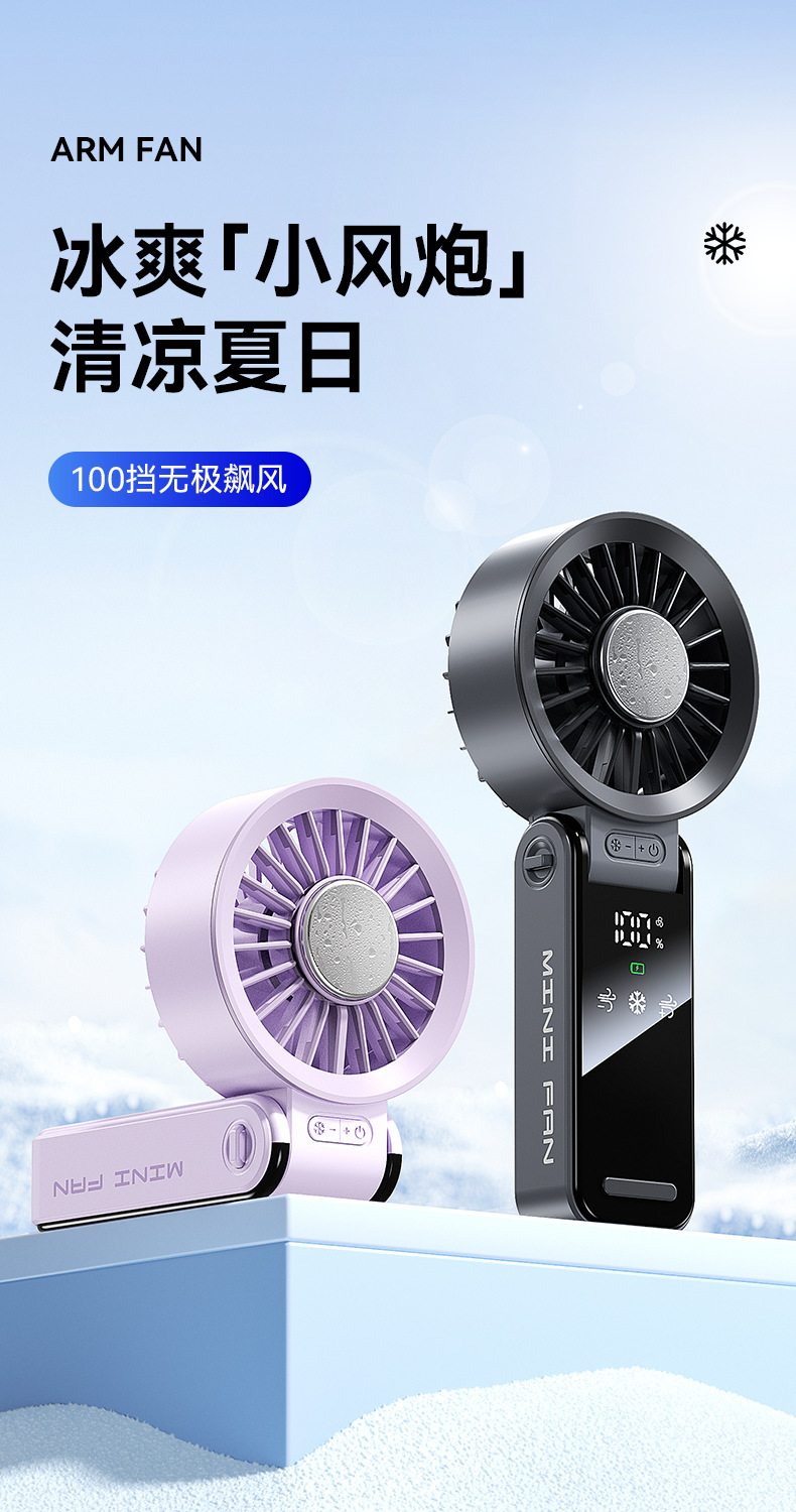 超高速制冷风扇强力劲风手持小风扇数显100档迷你便携USB桌面风扇