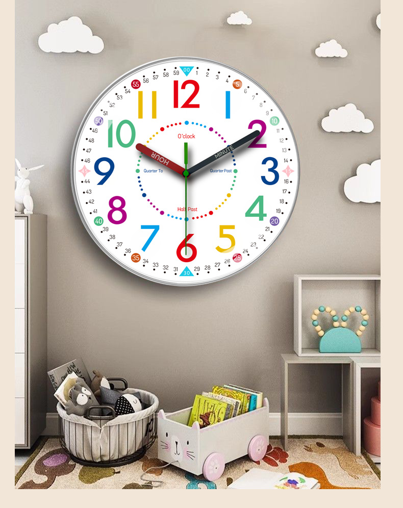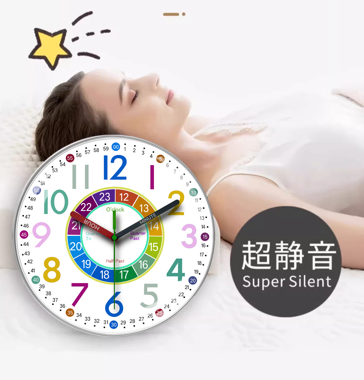 挂钟高级感早教学习静音客厅家用钟表学生儿童彩虹挂墙免打孔时钟