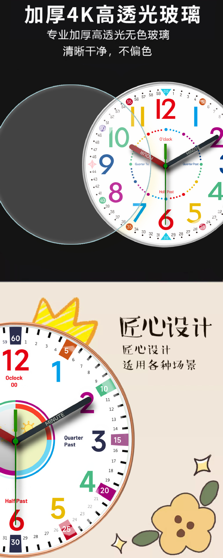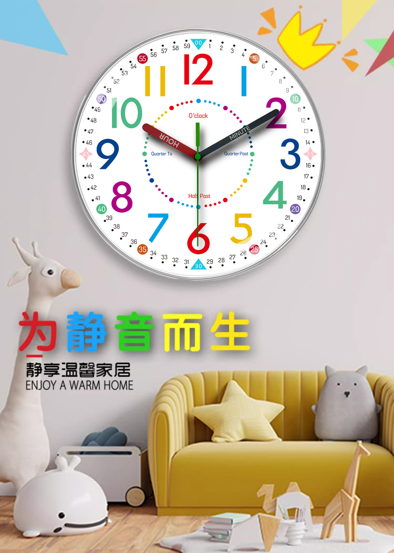 挂钟高级感早教学习静音客厅家用钟表学生儿童彩虹挂墙免打孔时钟,批发价,价格:18.1,厂家直销,挂钟高级感早教学习静音客厅家用钟表学生儿童彩虹挂墙免打孔时钟,免费拿样。