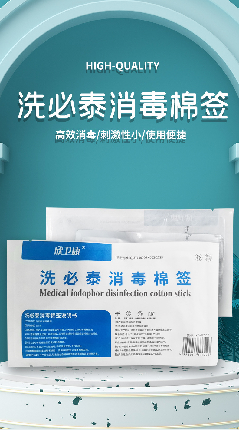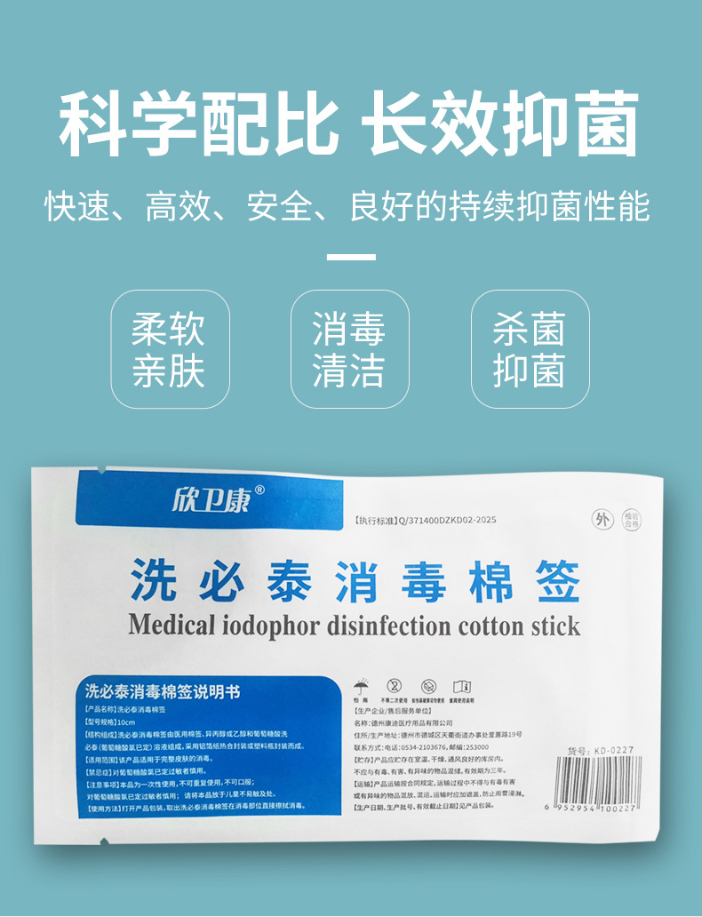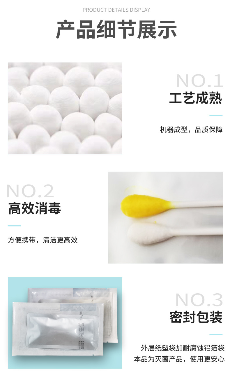 欣卫康消毒棉签耳鼻喉专用细长一次性医疗棉棒洗必泰消毒棉签棉签