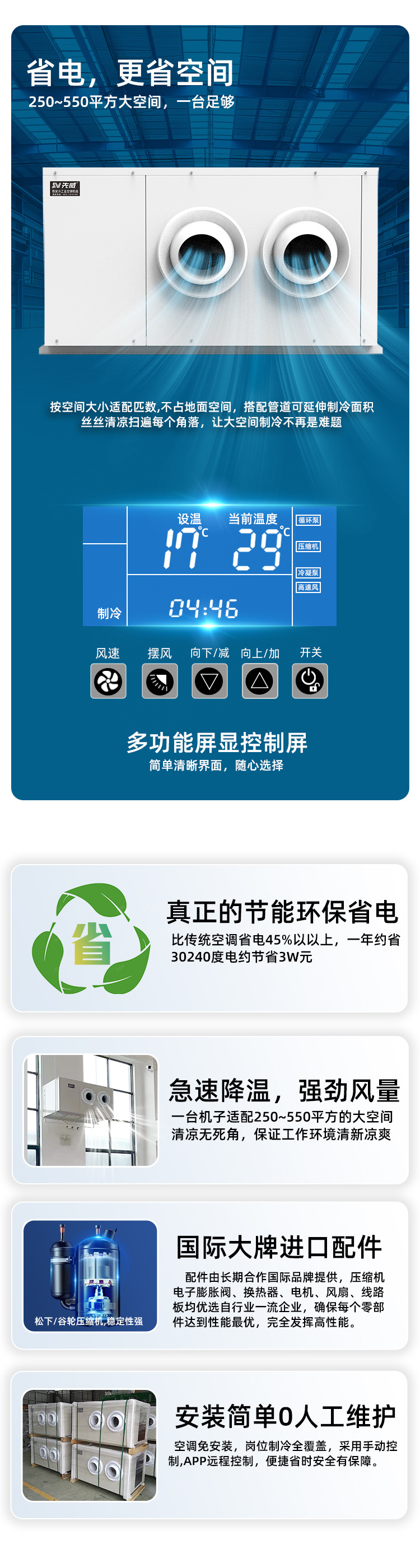 【一年省6万】新品蒸发冷吊柜省电空调省面积大空间制冷可配管道