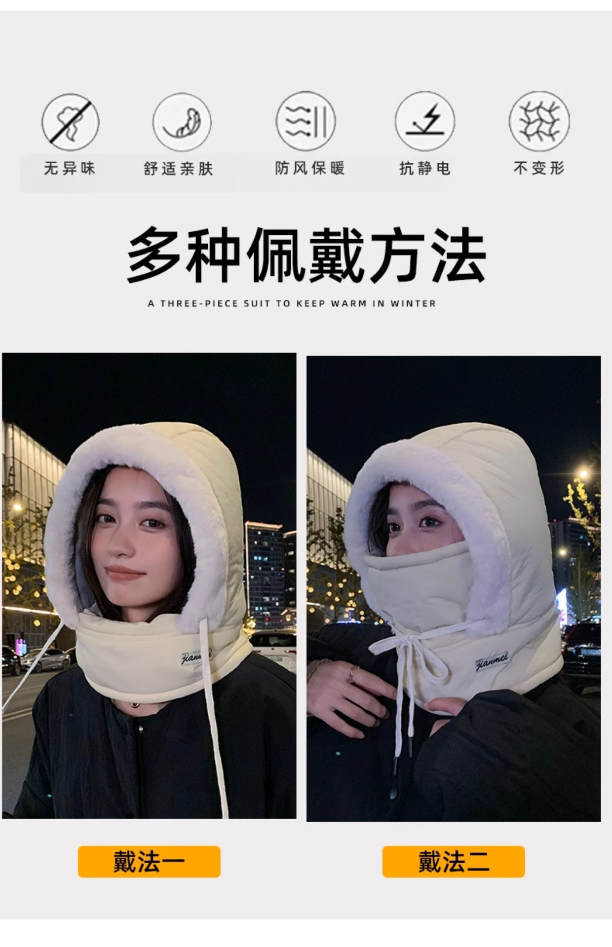 雷锋帽子秋冬男女保暖骑行帽脖防风围脖一体护耳加绒加厚防寒面罩