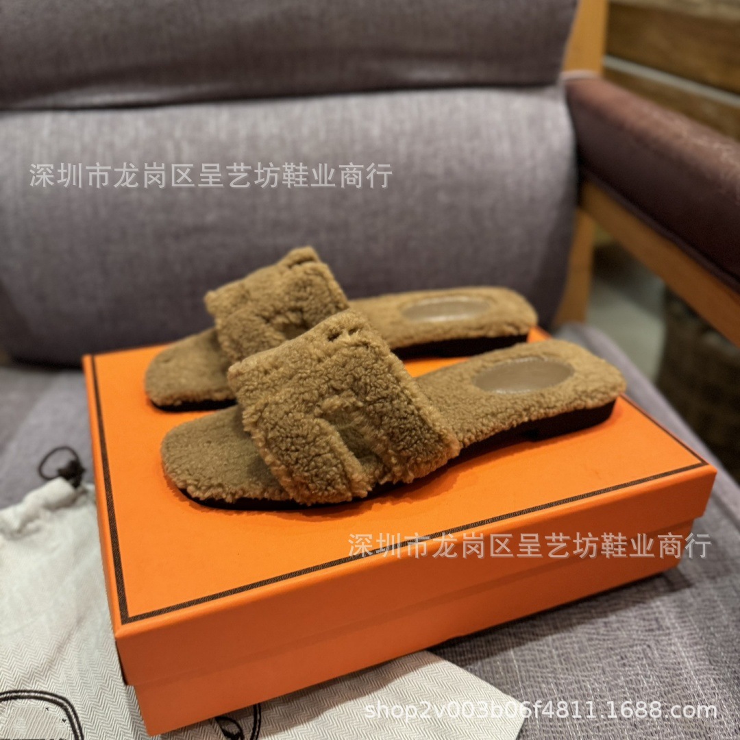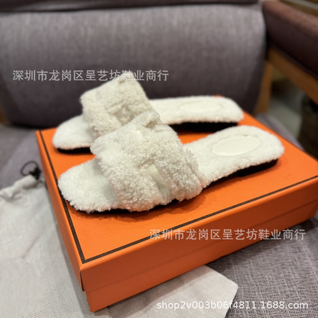 H毛毛拖鞋女外穿2025新款秋冬泰迪羊羔毛平底休闲一字拖外贸女鞋,批发价,价格:95,厂家直销,H毛毛拖鞋女外穿2025新款秋冬泰迪羊羔毛平底休闲一字拖外贸女鞋,免费拿样。