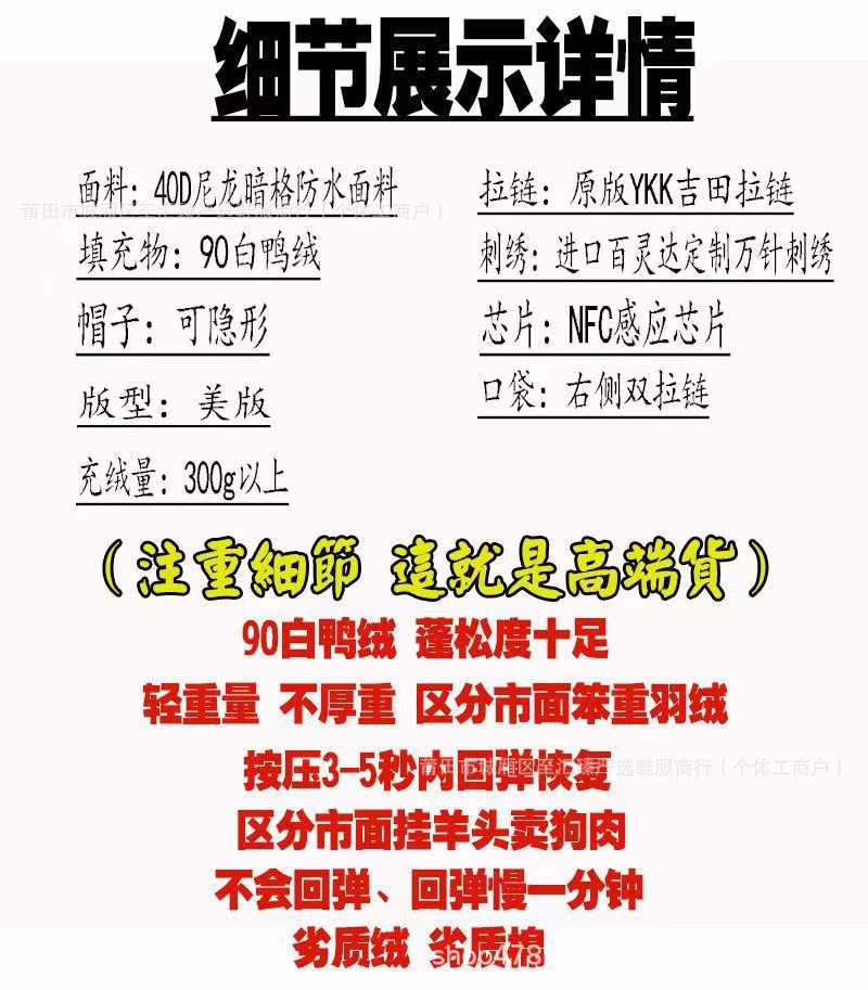 莆田纯原美版北脸1996TNF羽绒服男女白鸭绒700蓬加厚保暖长袖外套