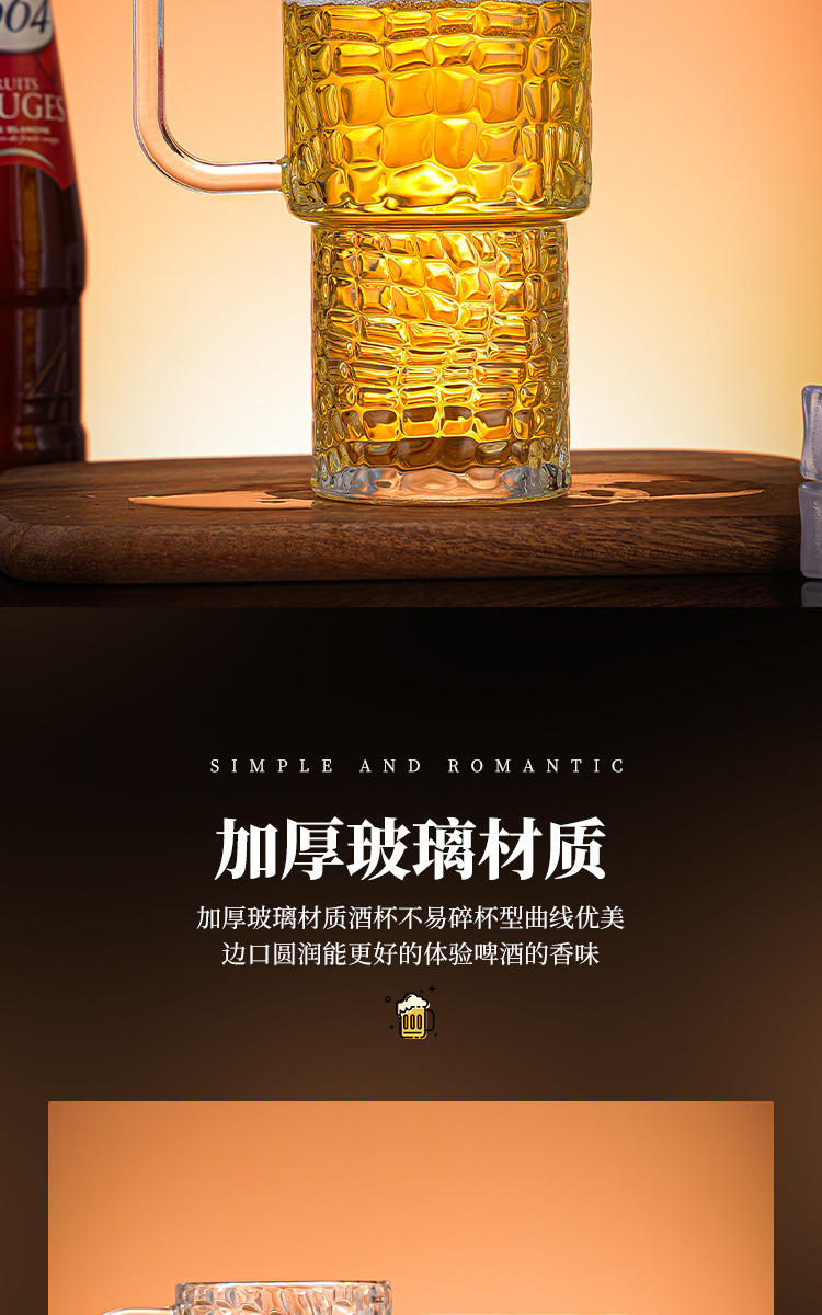 批发大容量啤酒杯家用喝水杯加厚大号扎啤玻璃杯饭店把手英雄杯子