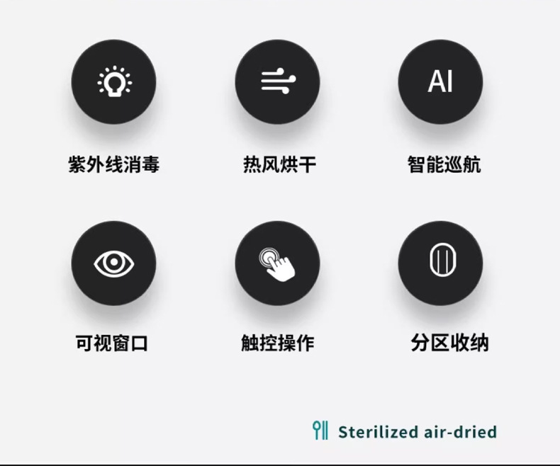 2. 便捷高效:无需水煮、擦拭,一键启动,3-5分钟快速完成消毒,适配家庭、食堂、餐饮门店等多场景