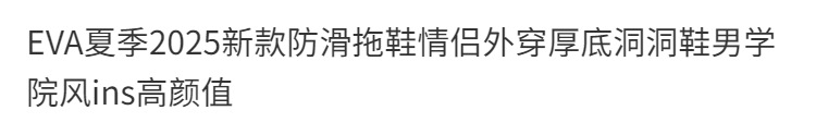 EVA夏季2025新款防水拖鞋情侣外穿厚底洞洞鞋男学院风ins高颜值,批发价,价格:11.3,厂家直销,EVA夏季2025新款防水拖鞋情侣外穿厚底洞洞鞋男学院风ins高颜值,免费拿样。