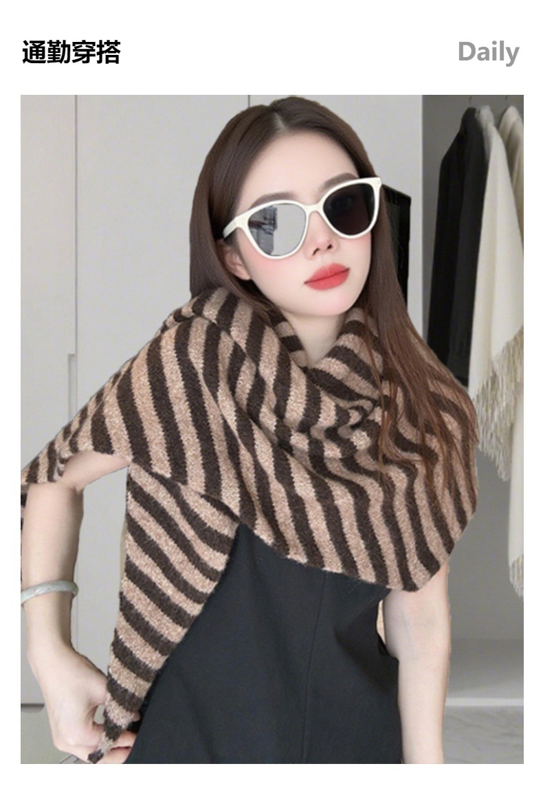 慵懒含羊毛三角巾围巾秋冬外搭女大披肩韩系纯色软糯百搭保暖围脖