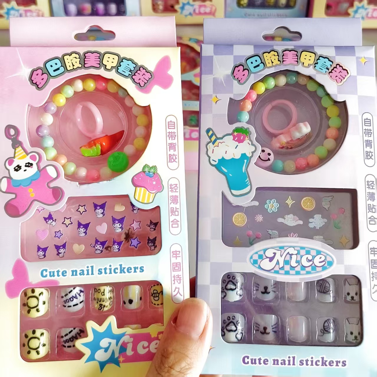 5件套儿童指甲贴自粘果冻穿戴甲片女孩戒指手链美甲贴片玩具套装,批发价,价格:5.7,厂家直销,5件套儿童指甲贴自粘果冻穿戴甲片女孩戒指手链美甲贴片玩具套装,免费拿样。