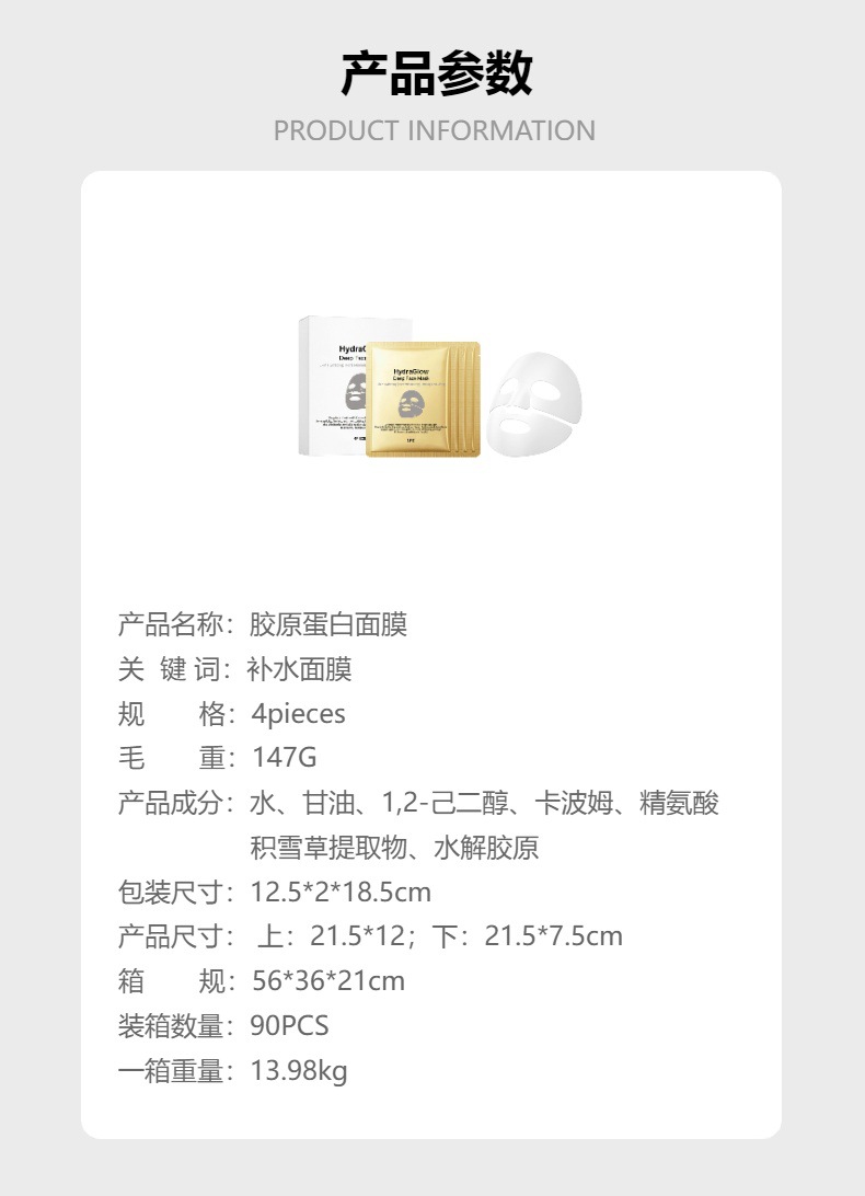 胶原蛋白面膜盒装 焕亮肤色光泽细腻柔嫩滋养弹润肌肤补水面膜,批发价,价格:12,厂家直销,胶原蛋白面膜盒装 焕亮肤色光泽细腻柔嫩滋养弹润肌肤补水面膜,免费拿样。