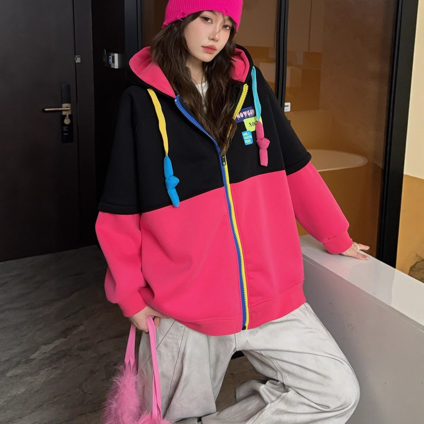 跨境外贸秋冬连帽衫卫衣男女宽松落肩袖纯色长袖外套现货工厂直销