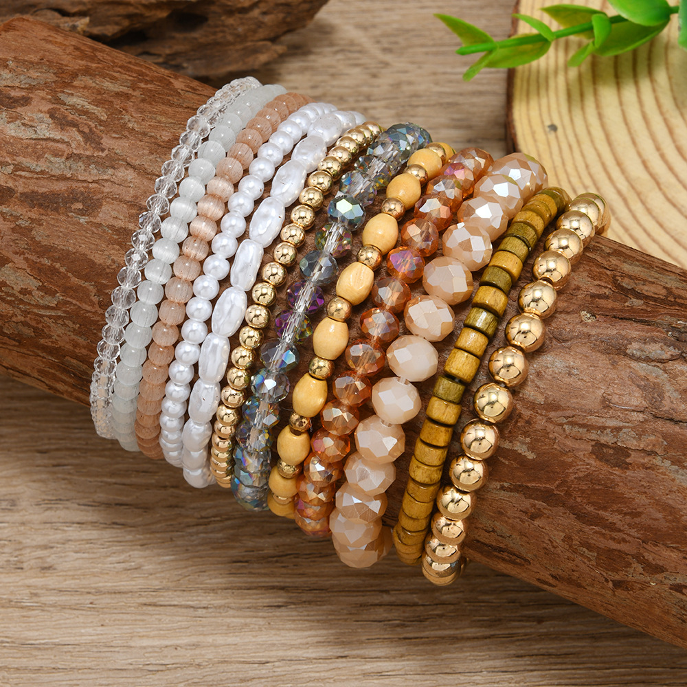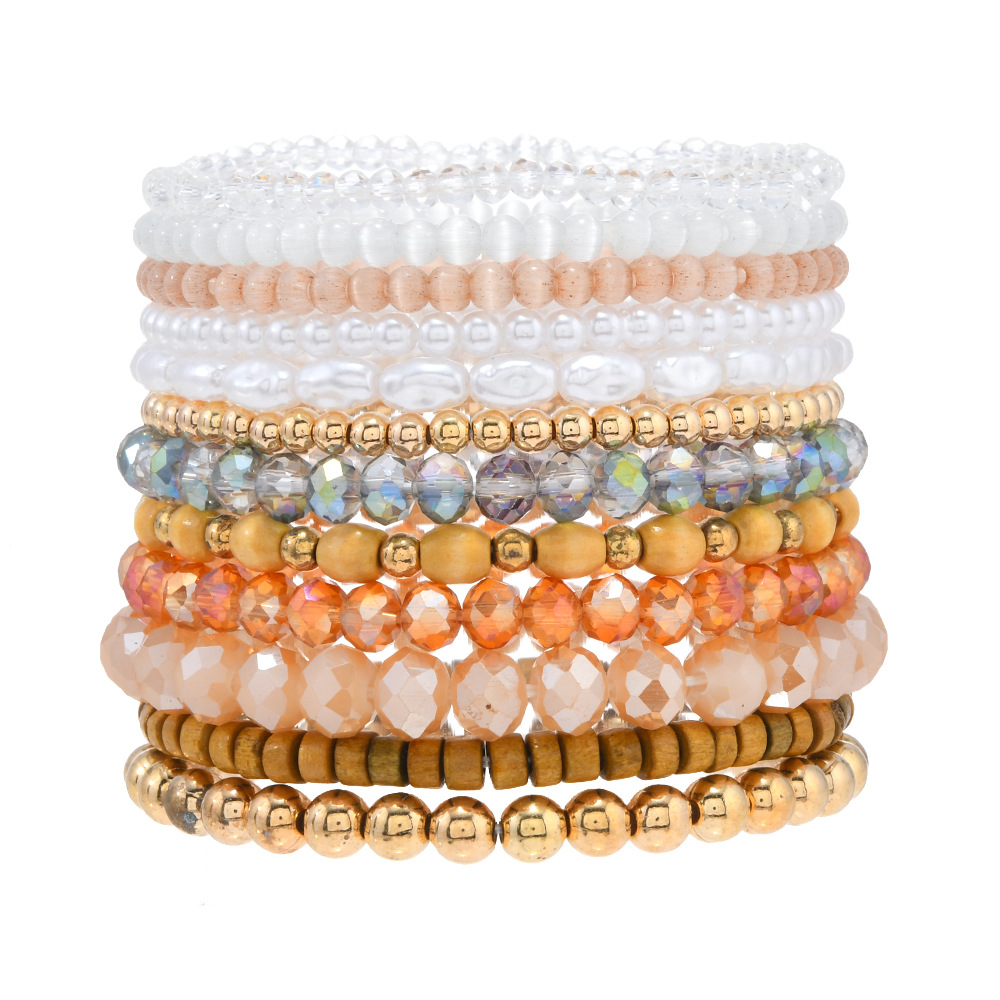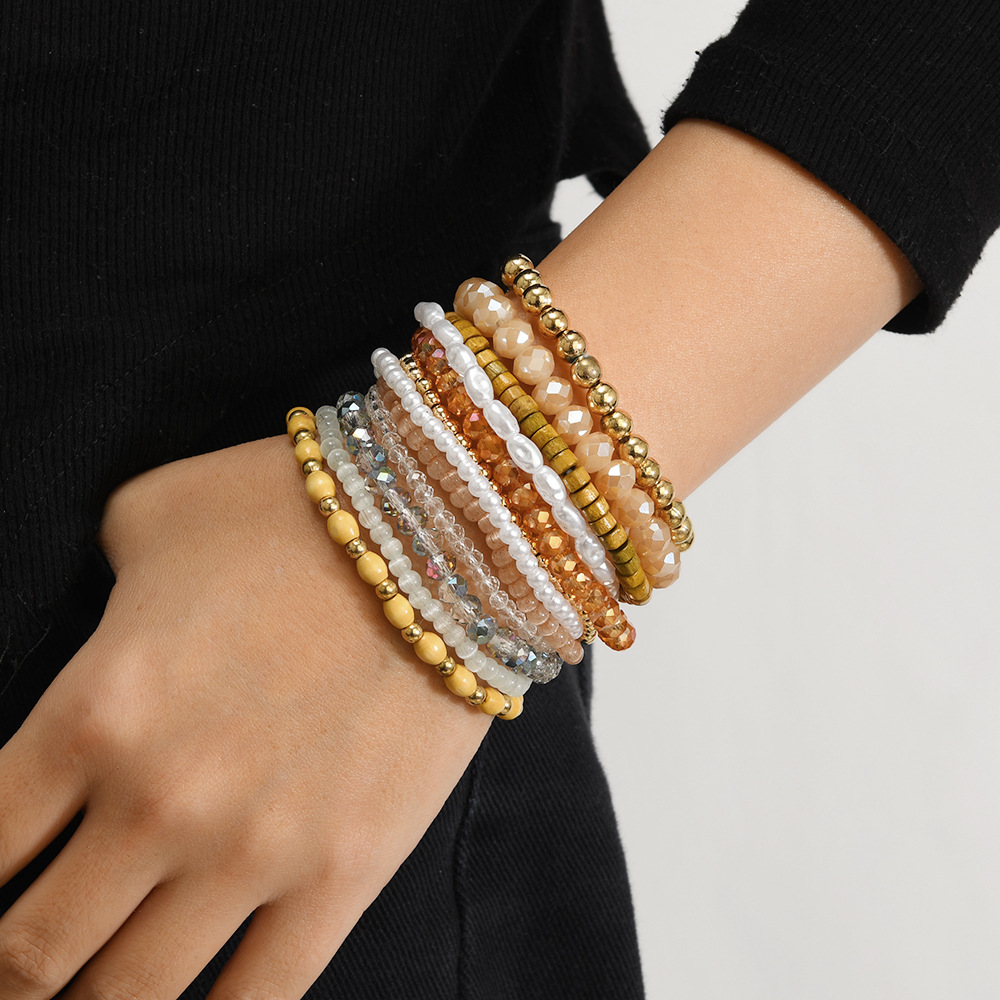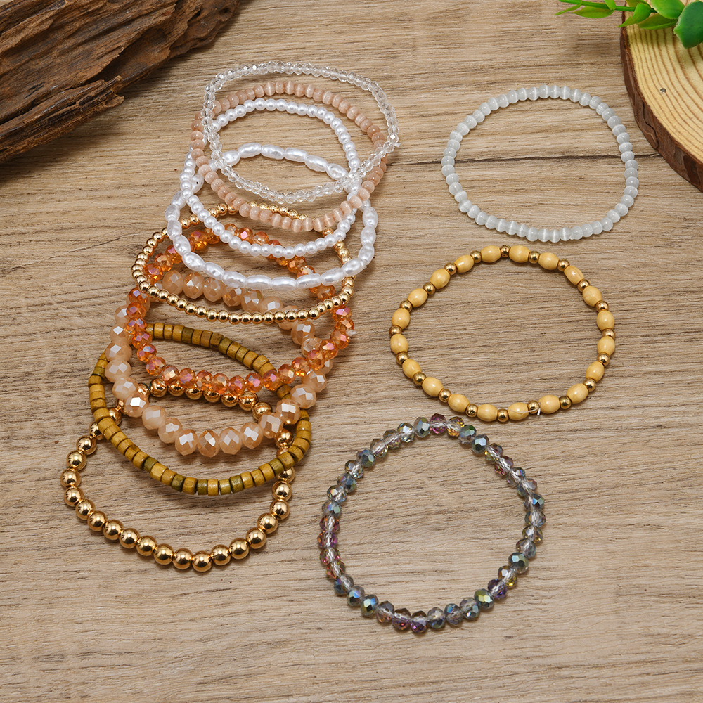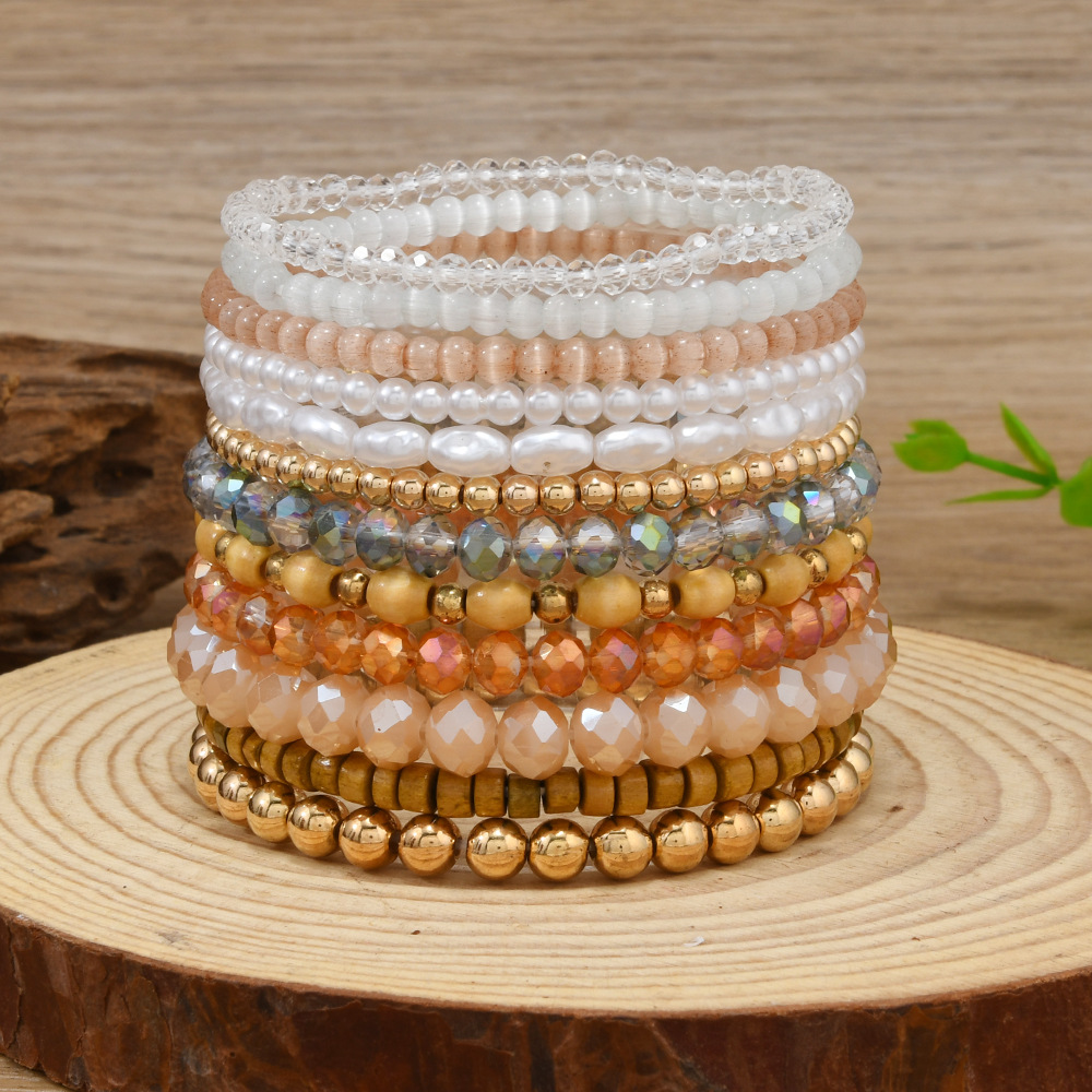 跨境Temu爆款个性时尚水晶手链七彩米珠波西米亚叠戴天然水晶