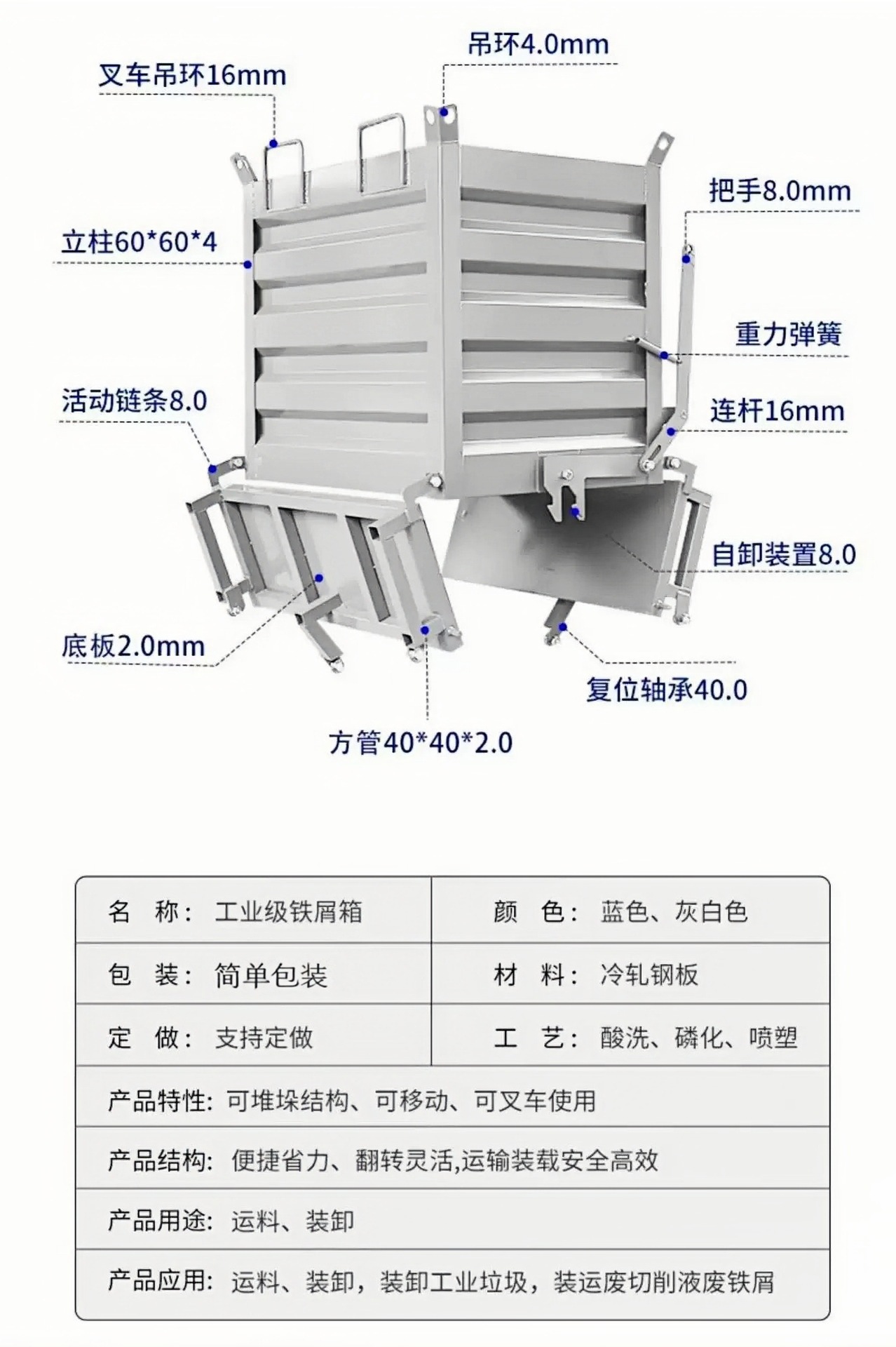重型自卸铁屑箱金属周转箱工业废料收集倒料箱叉车移动底部打开箱,批发价,价格:600,厂家直销,重型自卸铁屑箱金属周转箱工业废料收集倒料箱叉车移动底部打开箱,免费拿样。