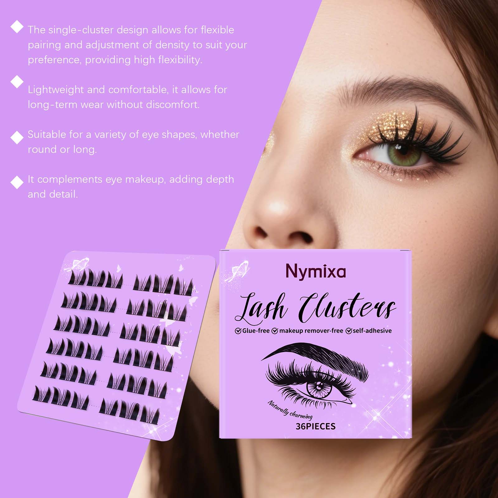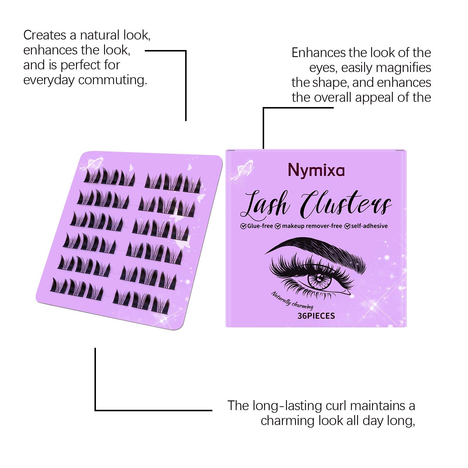 Nymixa免胶款假睫毛 卷翘轻薄自然单簇易佩戴佩戴稳固免胶假睫毛