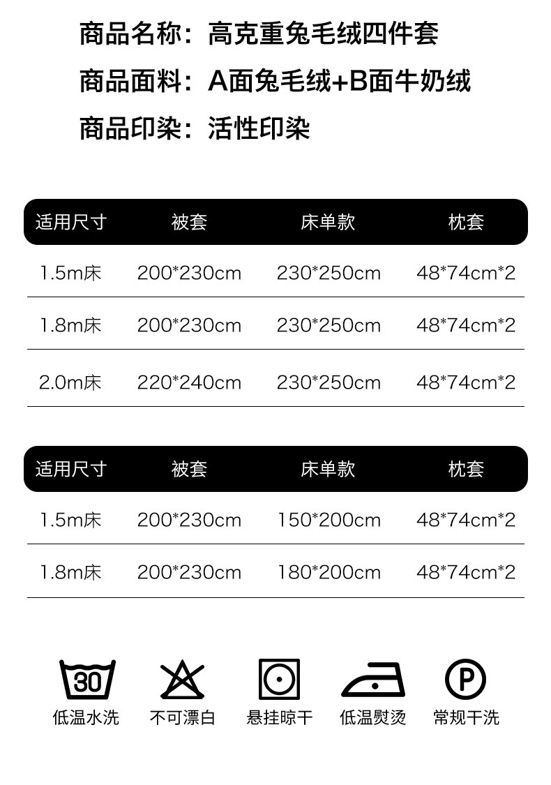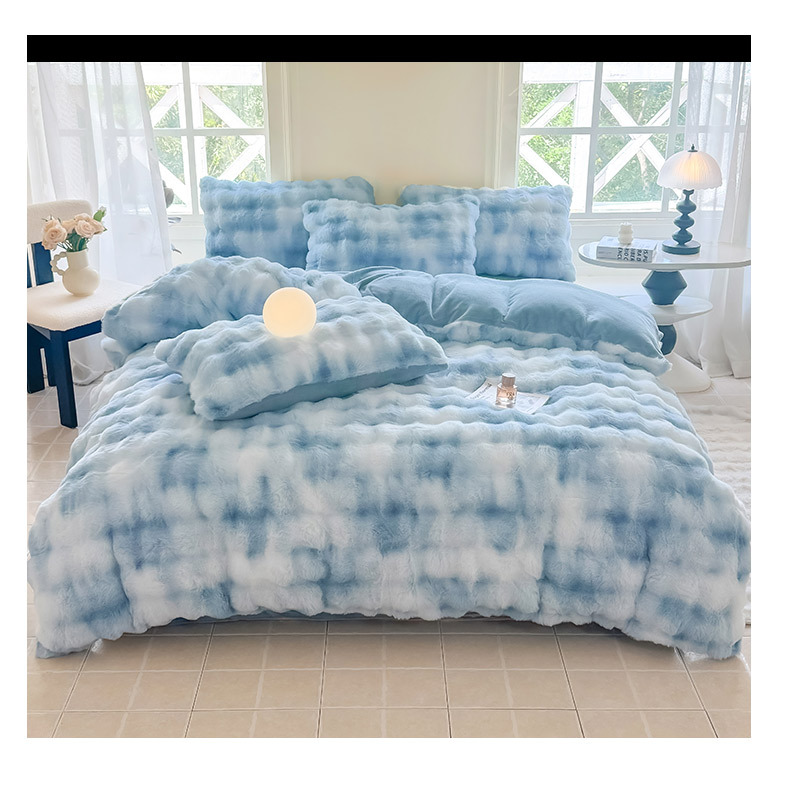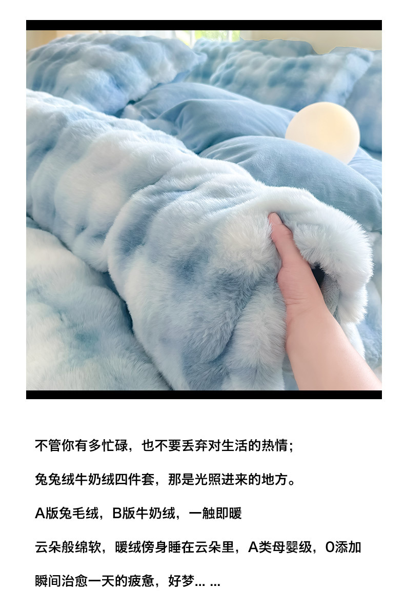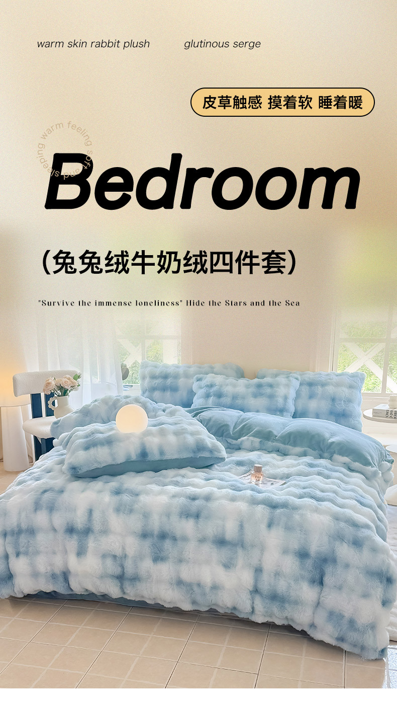 冬季兔毛牛奶绒床上四件套加绒被套单件宿舍简约高克重