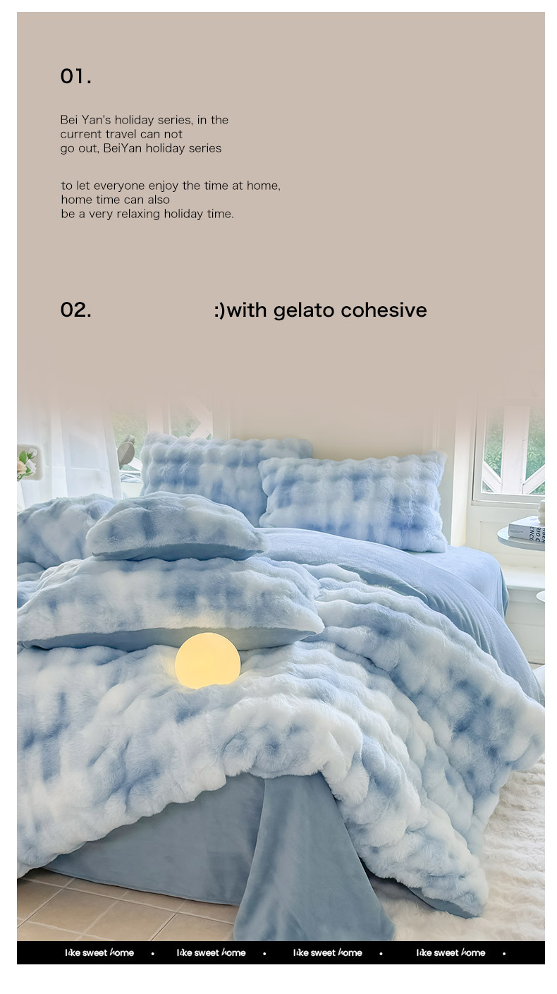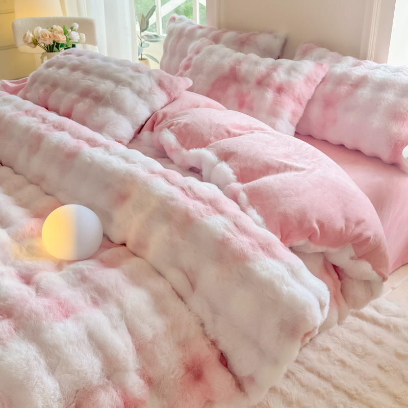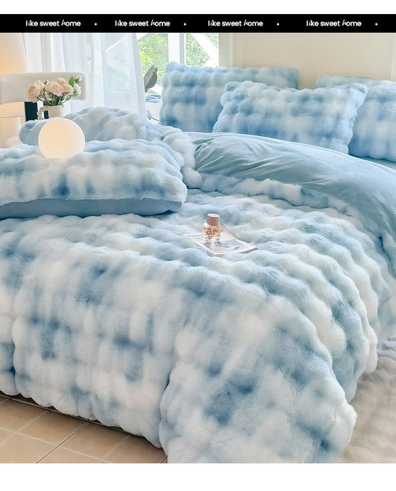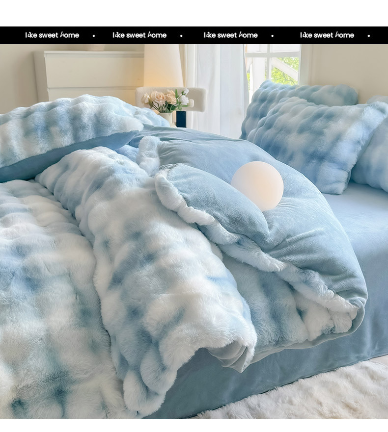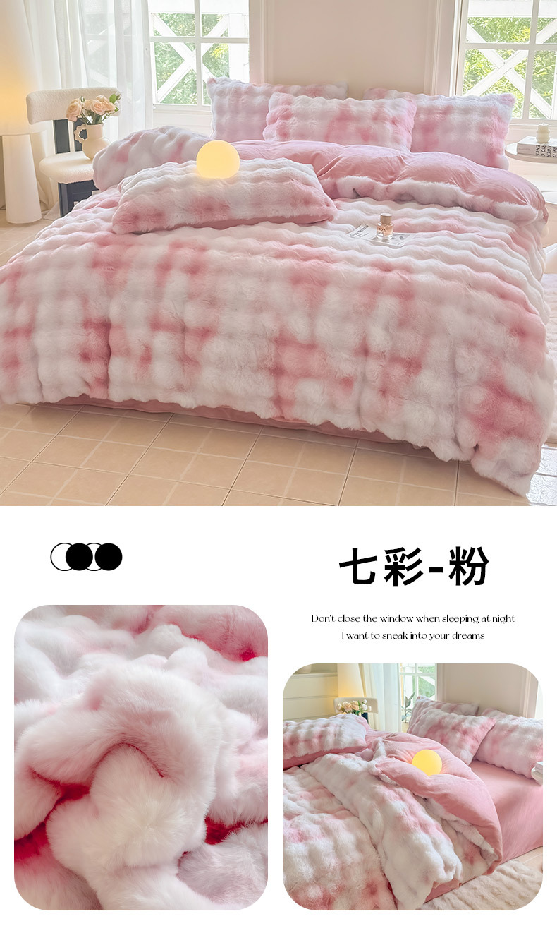 冬季兔毛牛奶绒床上四件套加绒被套单件宿舍简约高克重