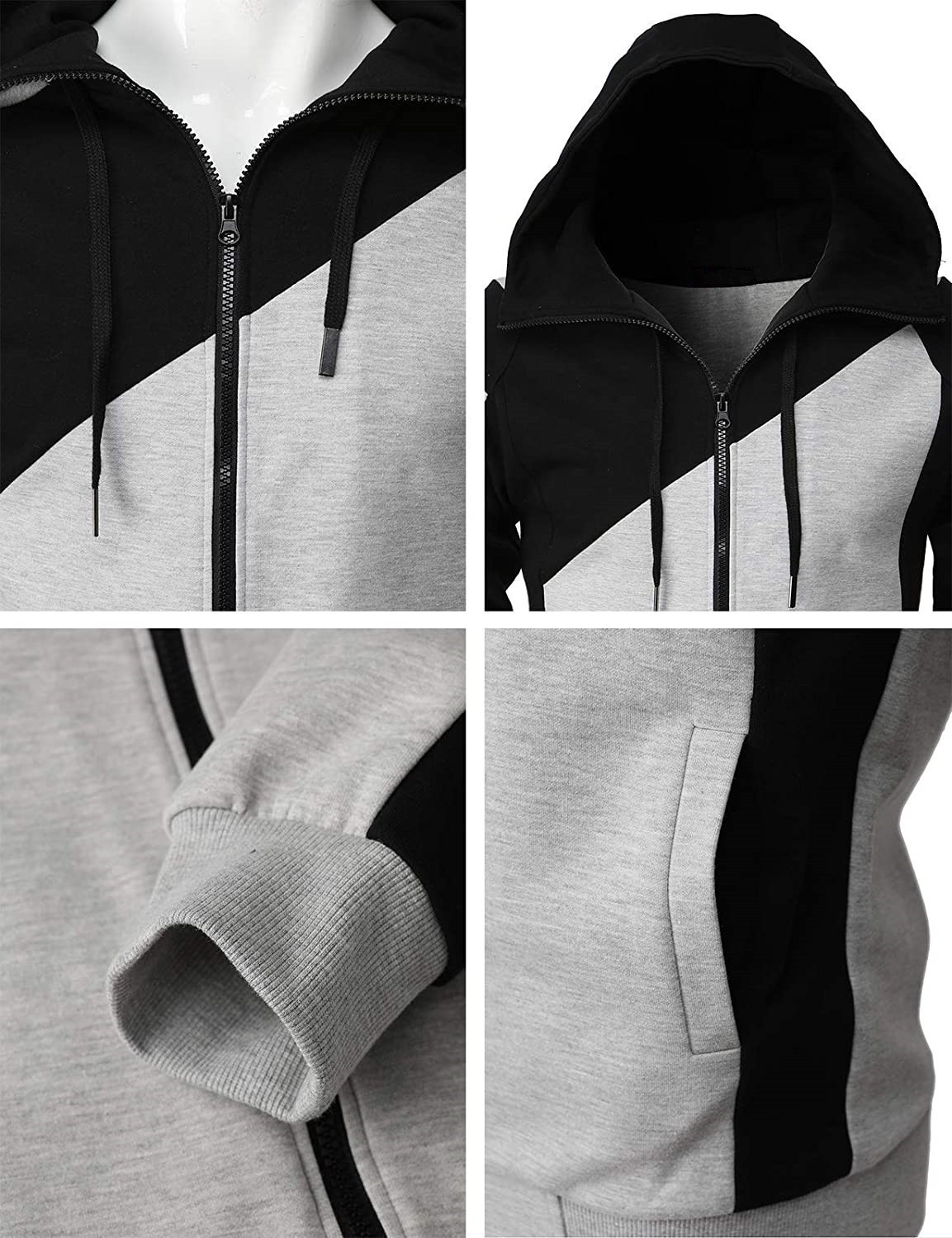 春秋季外贸双色拼接运动连帽外套长袖长裤休闲运动男式