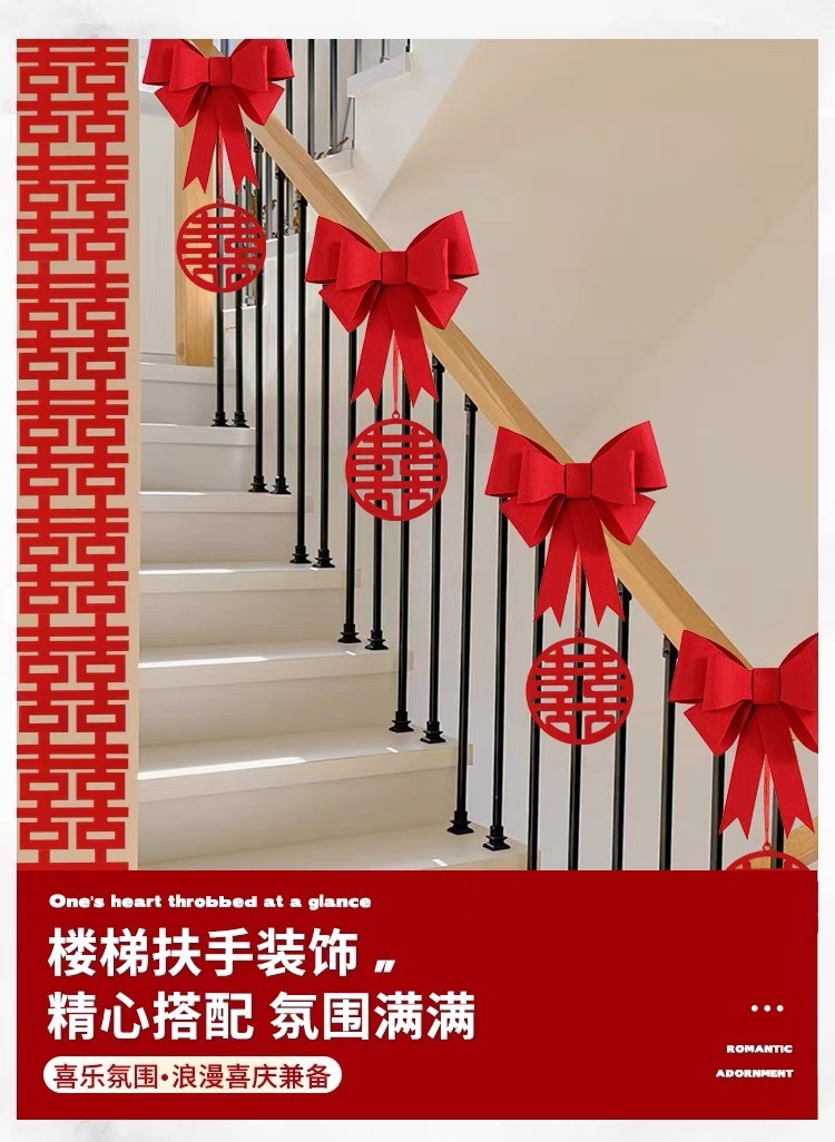 结婚楼梯扶手装饰婚房布置套装婚礼女方拉花扶梯婚庆挂件用品大全