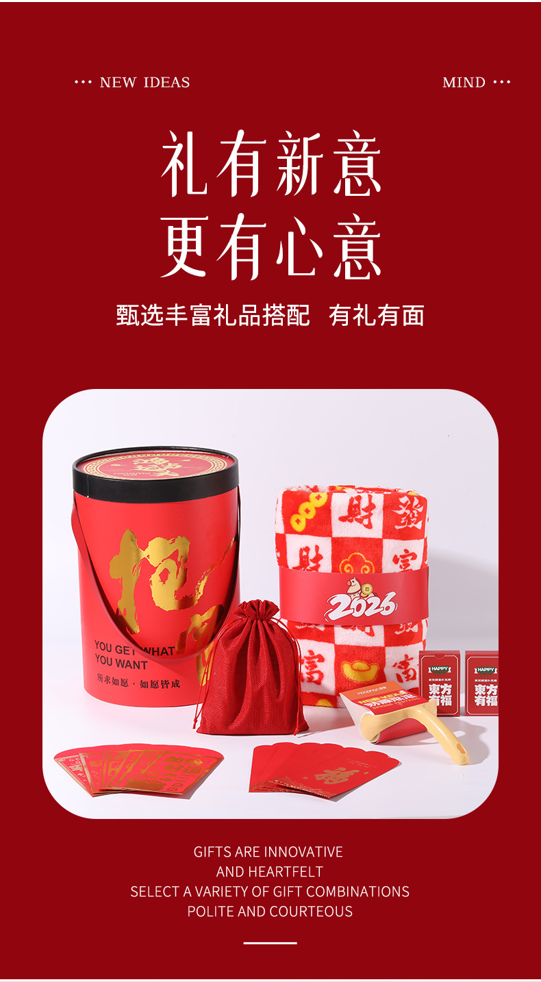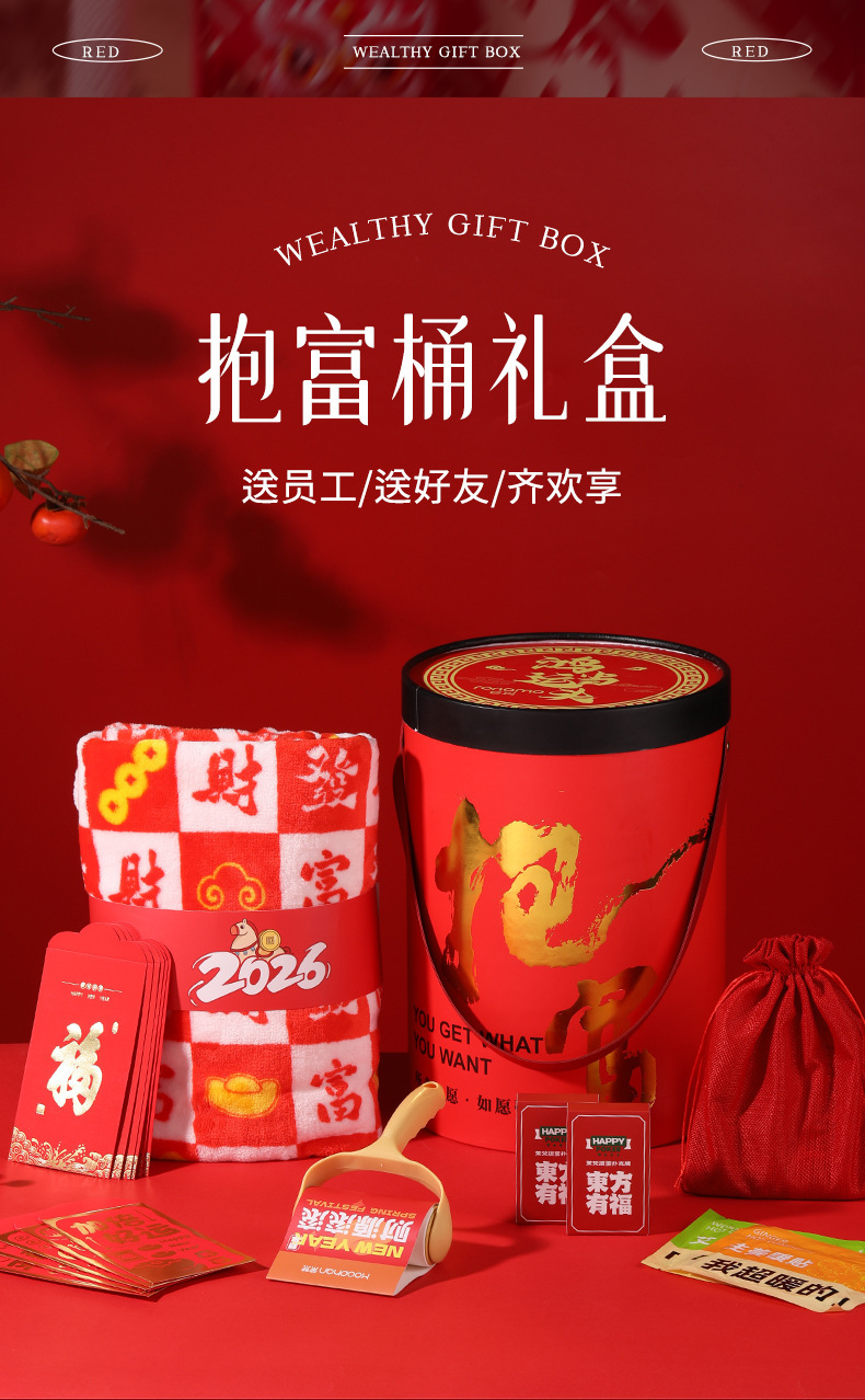 2026马年春节礼盒企业门店员工福利公司年会伴手礼抽奖奖品暴富桶