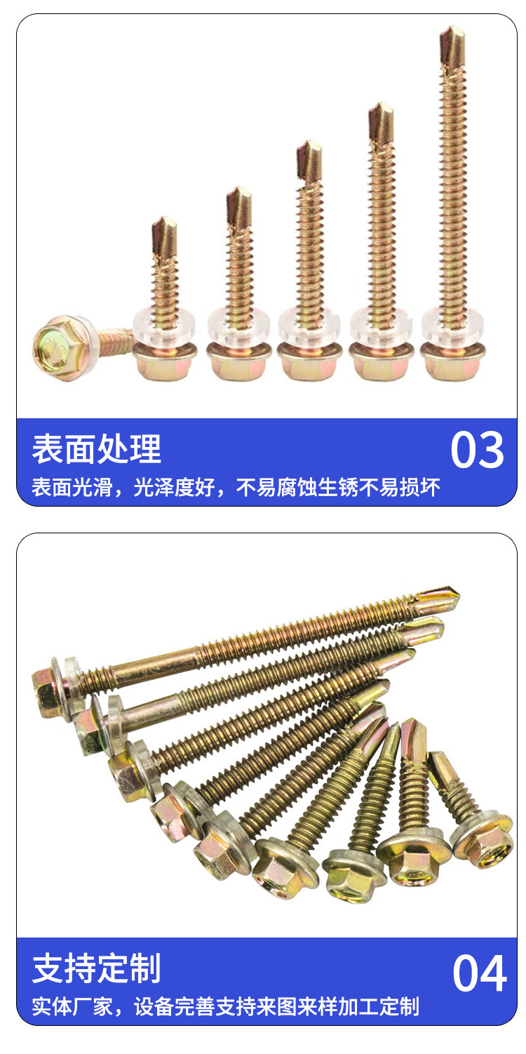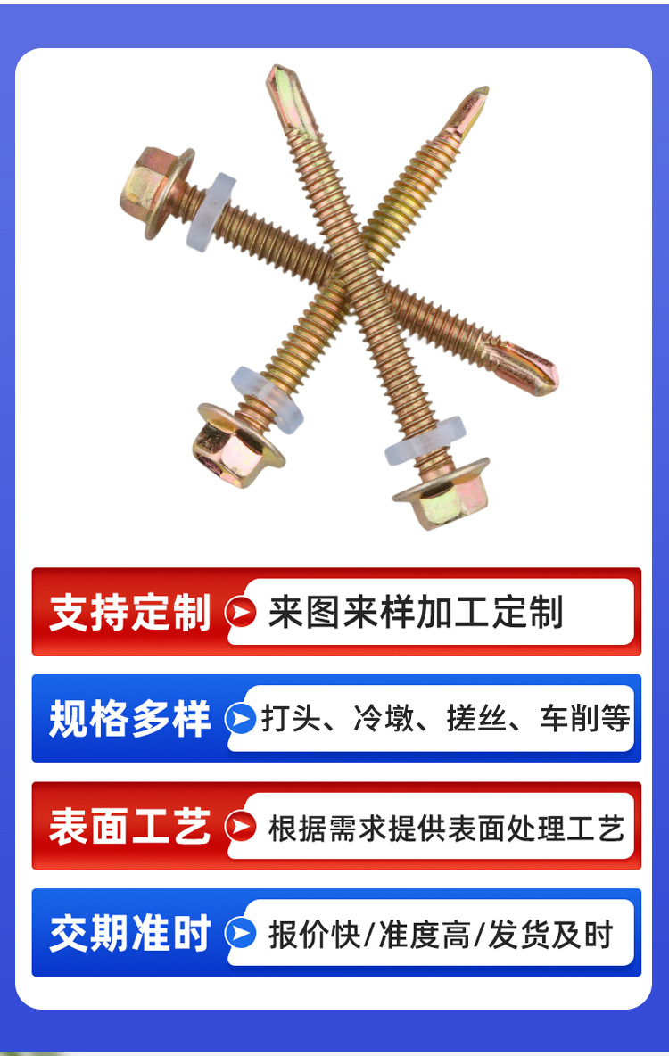 彩锌六角钻尾丝带胶垫自钻自攻螺丝M4.2-M5.5燕尾钉自钻螺钉厂家