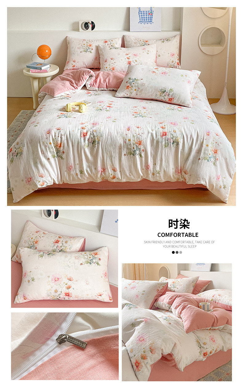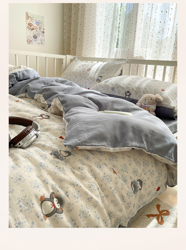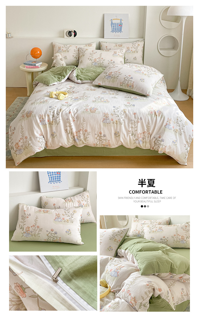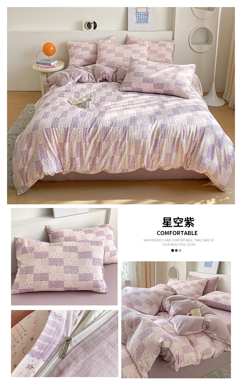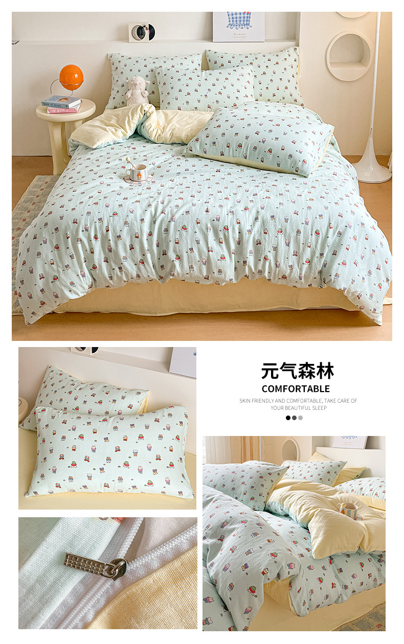 A类母婴级全棉双层纱三件套四件套ins风简约款床单被罩