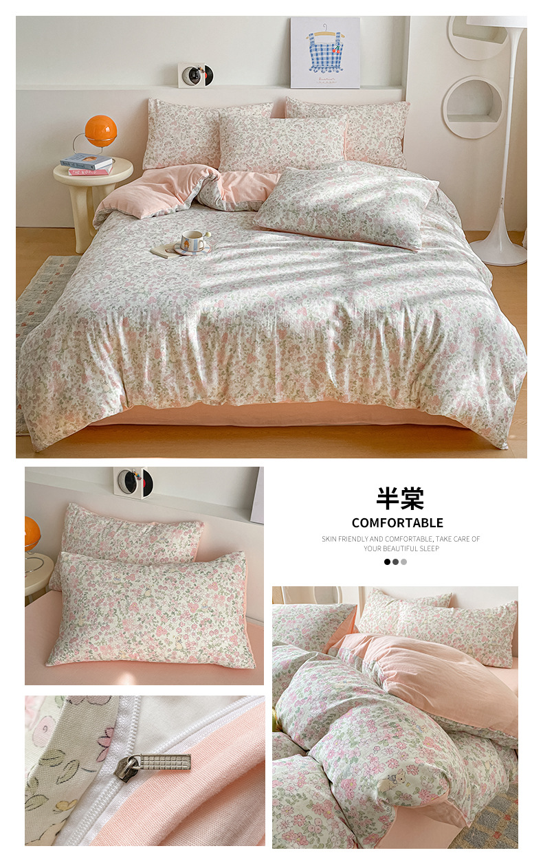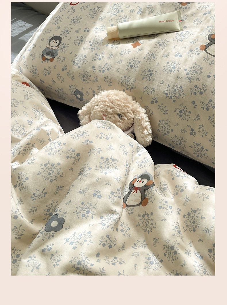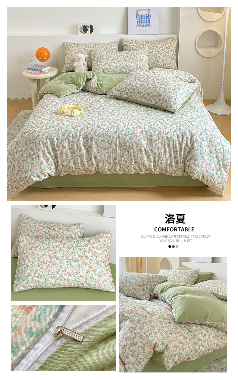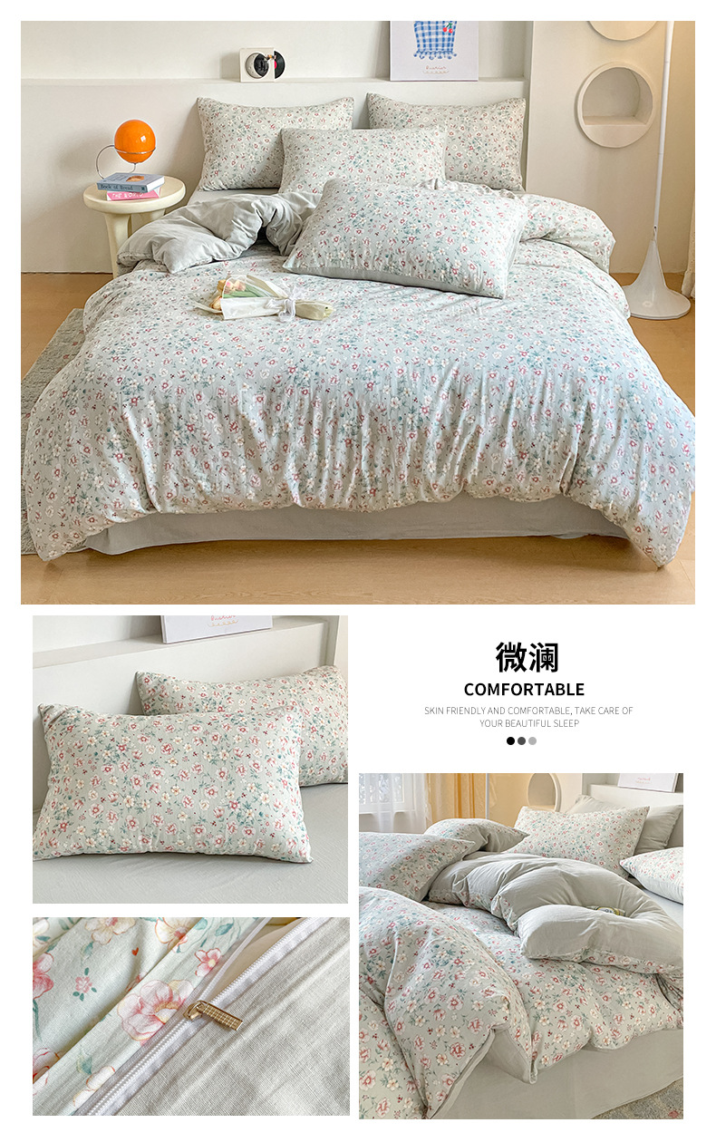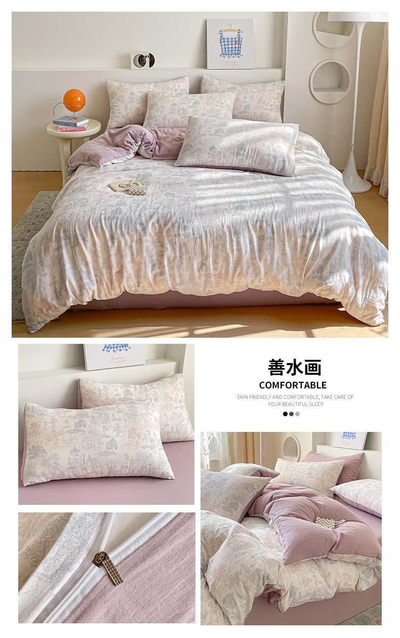 A类母婴级全棉双层纱三件套四件套ins风简约款床单被罩