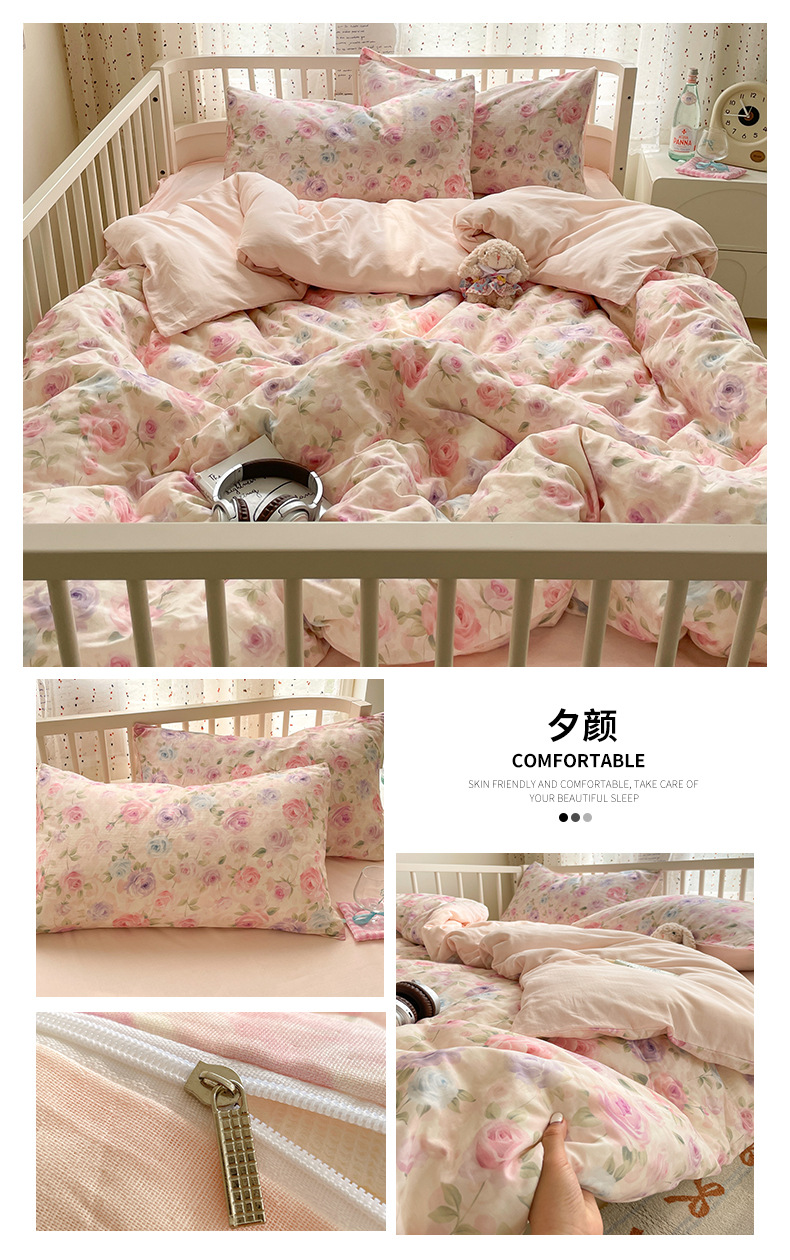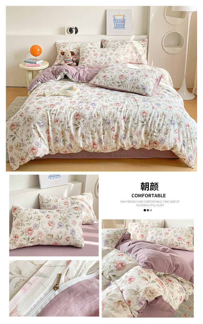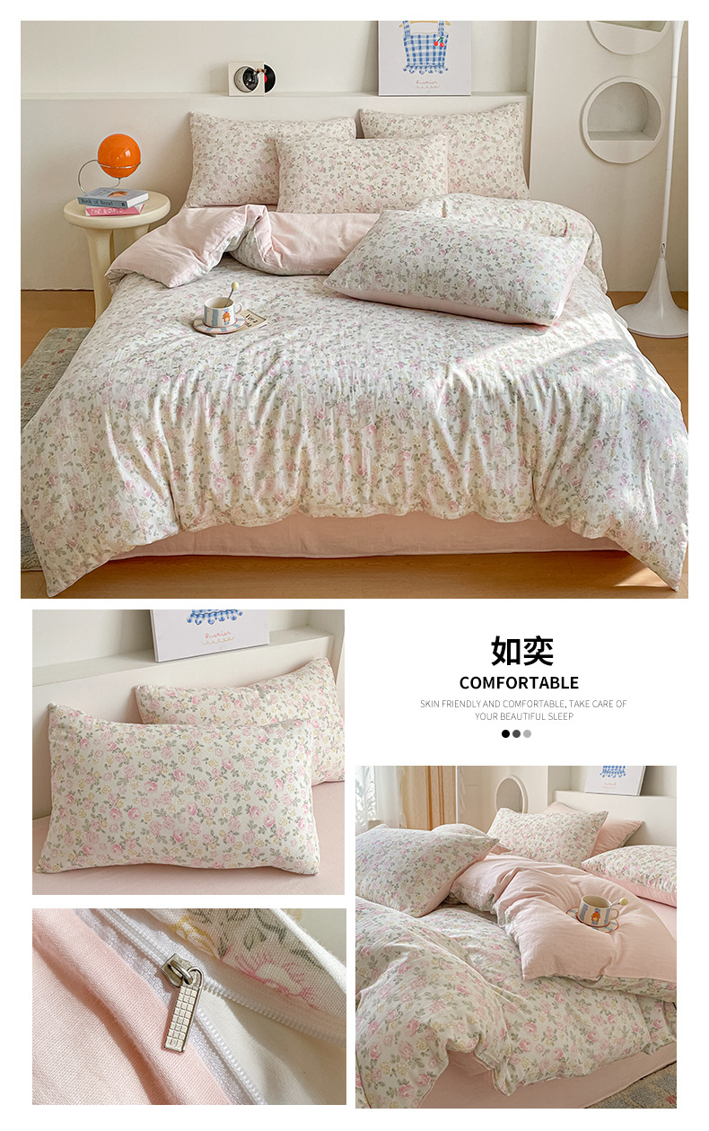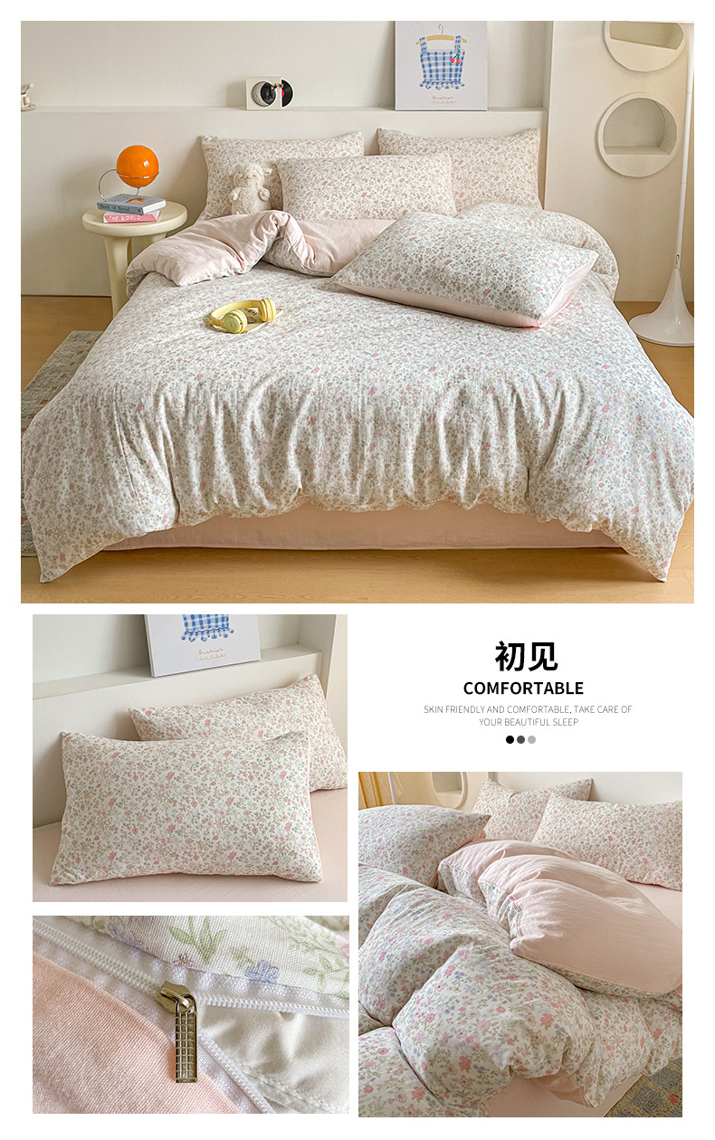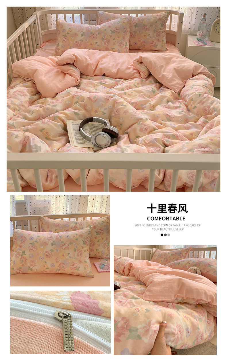 A类母婴级全棉双层纱三件套四件套ins风简约款床单被罩