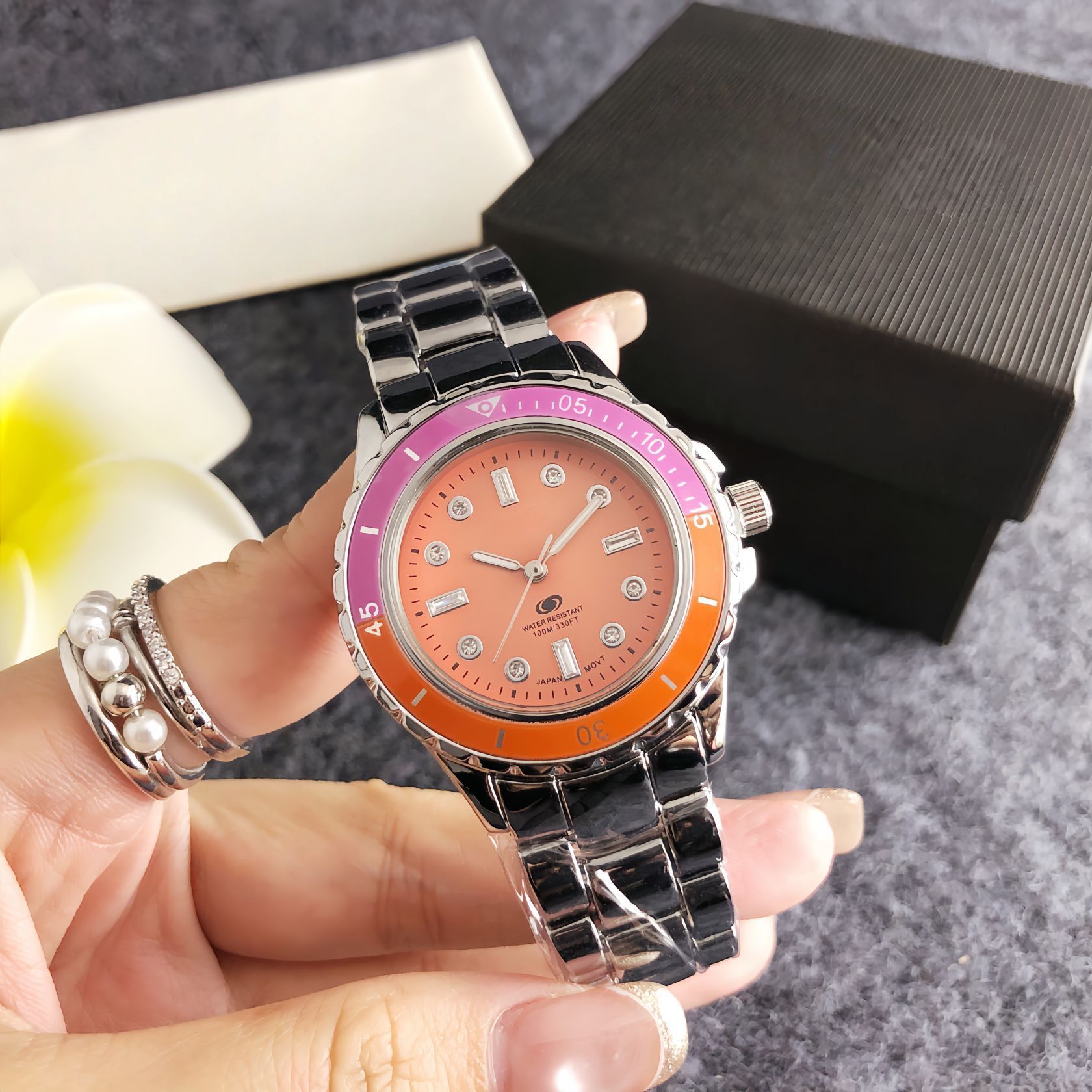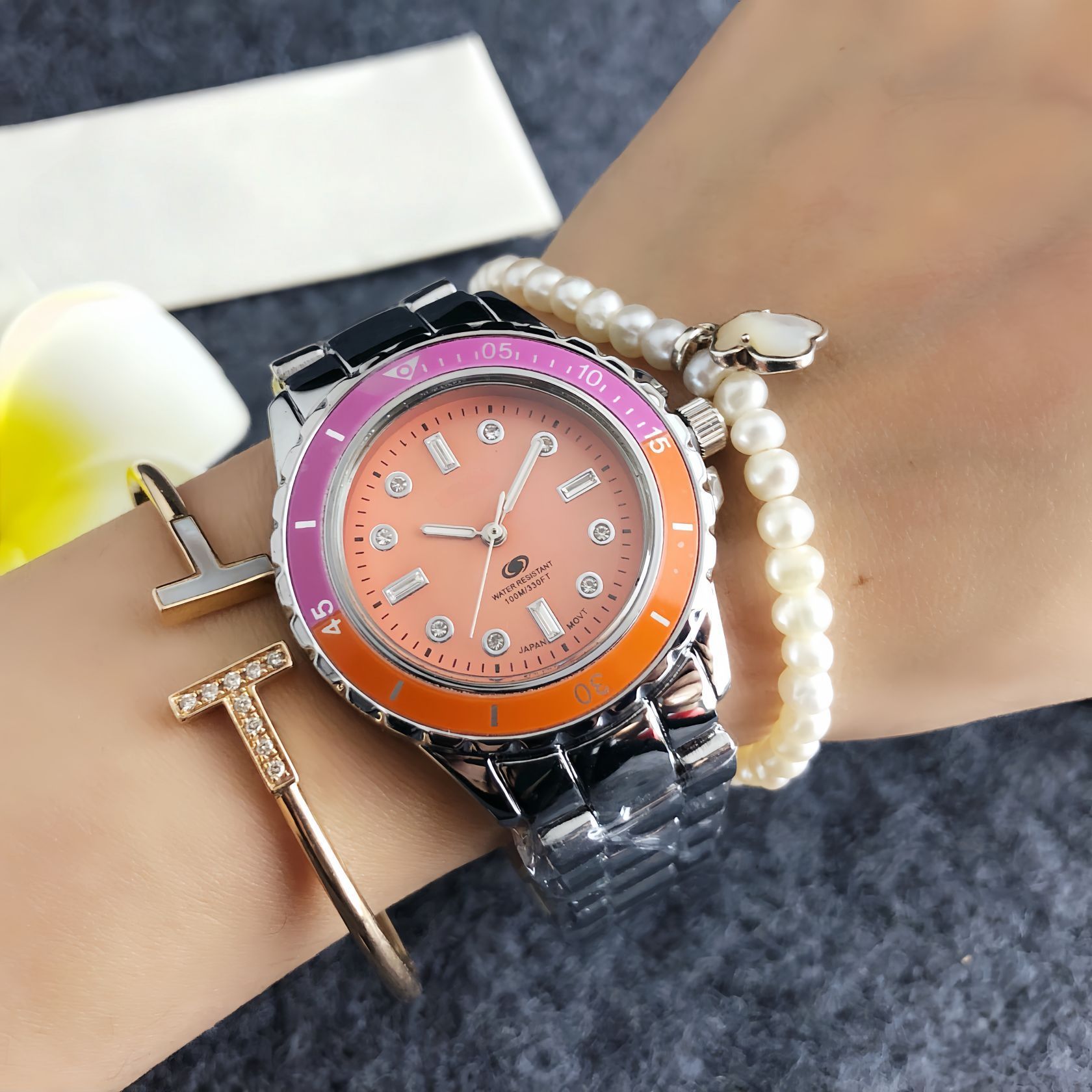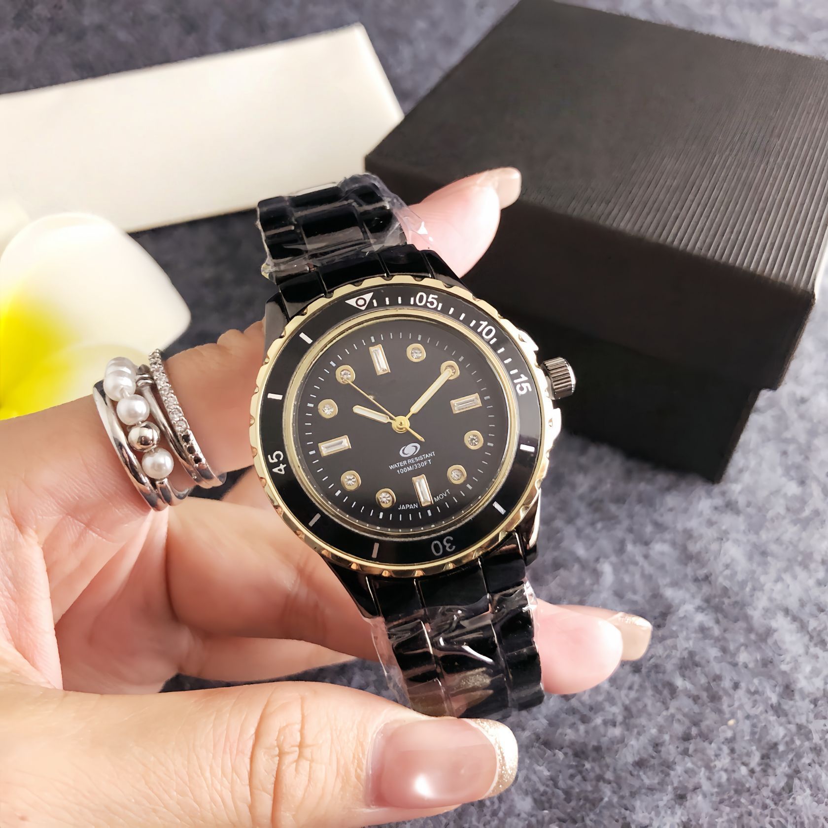 新款tiktok热销厂家批发潮流陶瓷钢带时尚石英表运动风黑盘设计