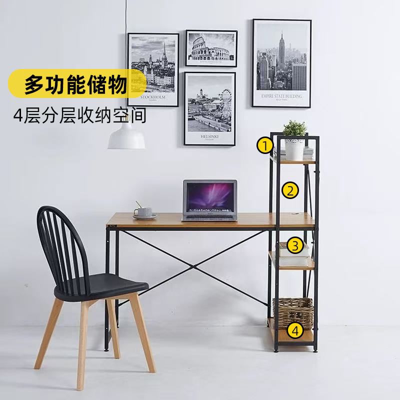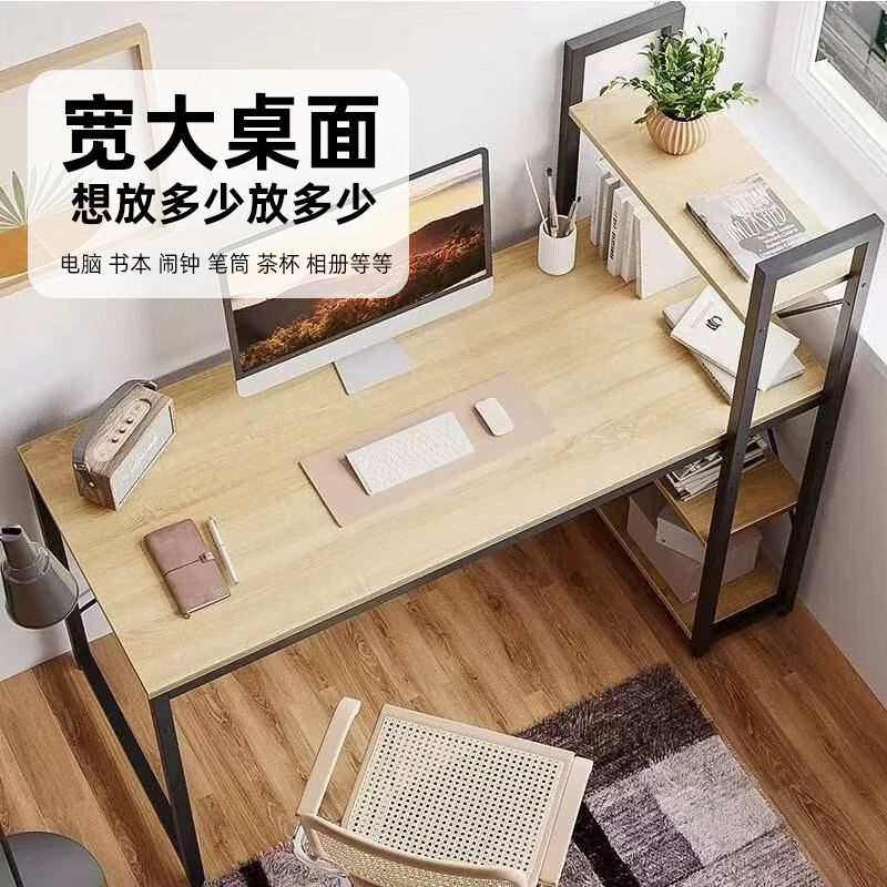 跨境书桌家用简约带置物架电脑桌学生写字书桌课桌台式收纳办公桌